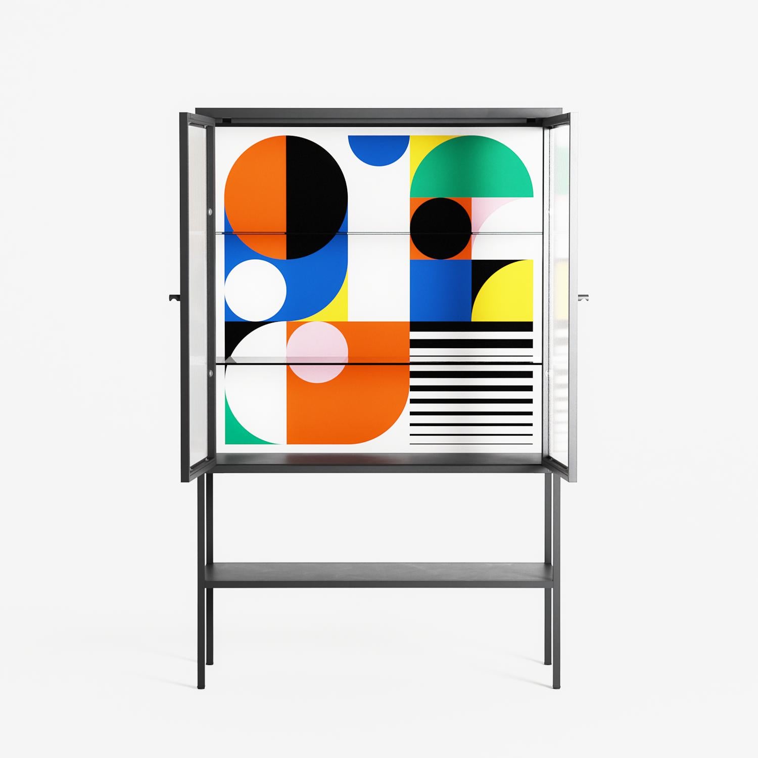 Vitrine pairs artworks by artists, designers, and creatives from around the world with a frame that elevates and displays them in everyday space. The cabinet is built from precision-cut metal with a powder-coated finish — resistant to wear and crafted for stability — making it ideal for both office and home spaces.