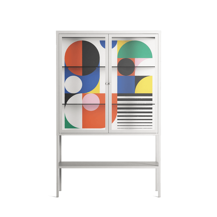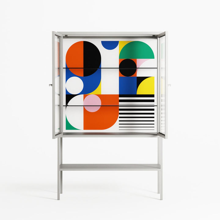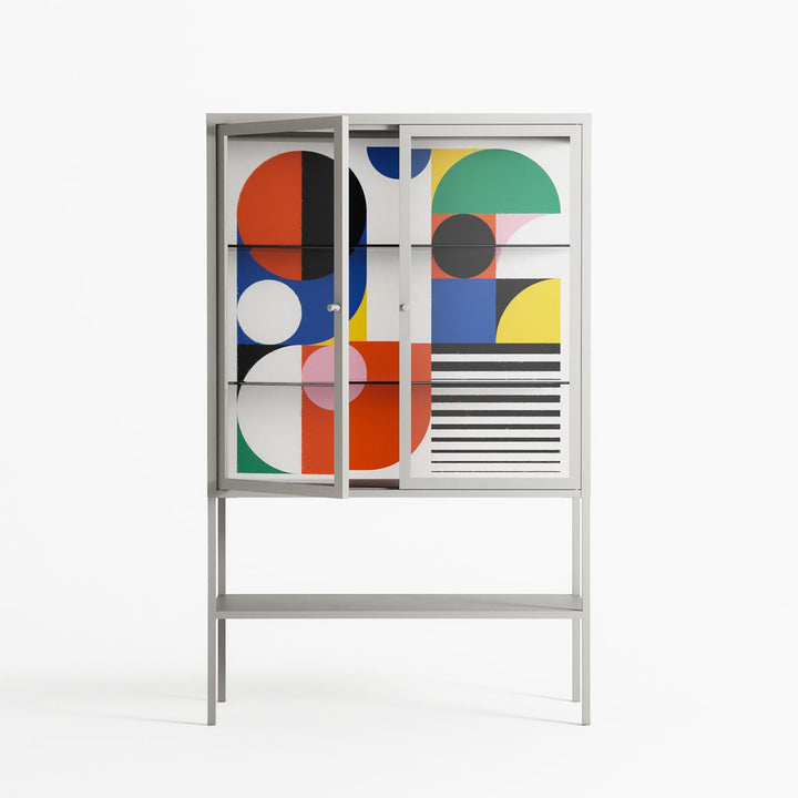Vitrine pairs artworks by artists, designers, and creatives from around the world with a frame that elevates and displays them in everyday space. The cabinet is built from precision-cut metal with a powder-coated finish — resistant to wear and crafted for stability — making it ideal for both office and home spaces.
