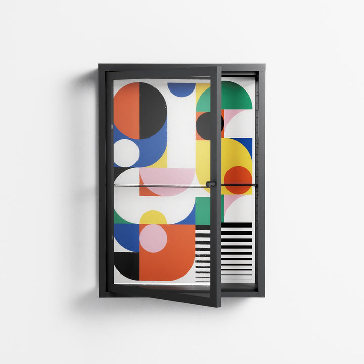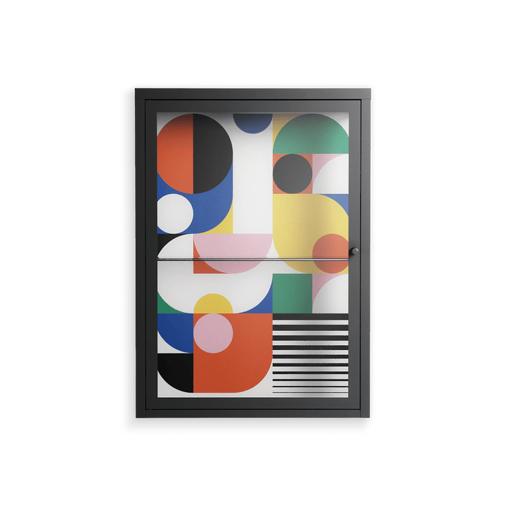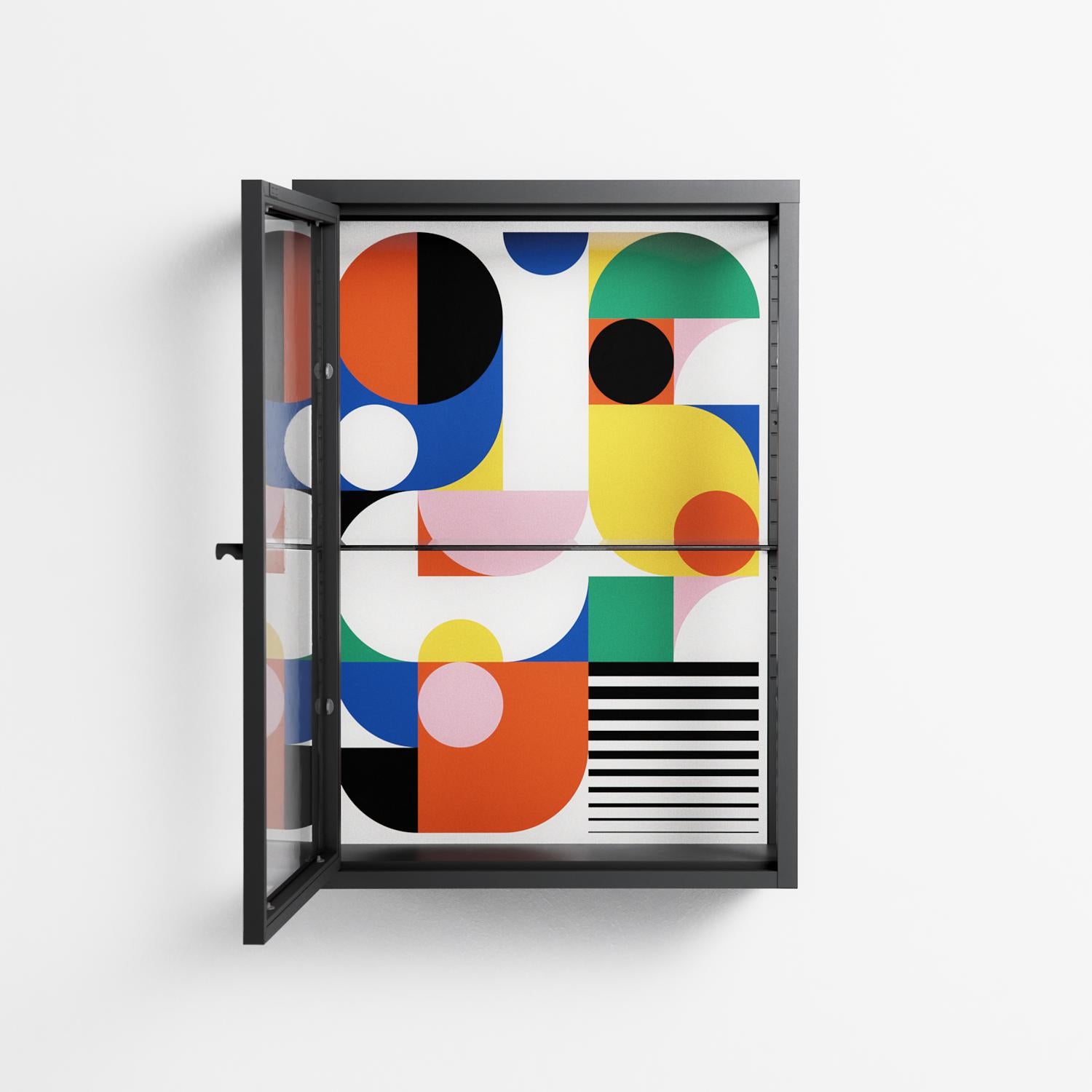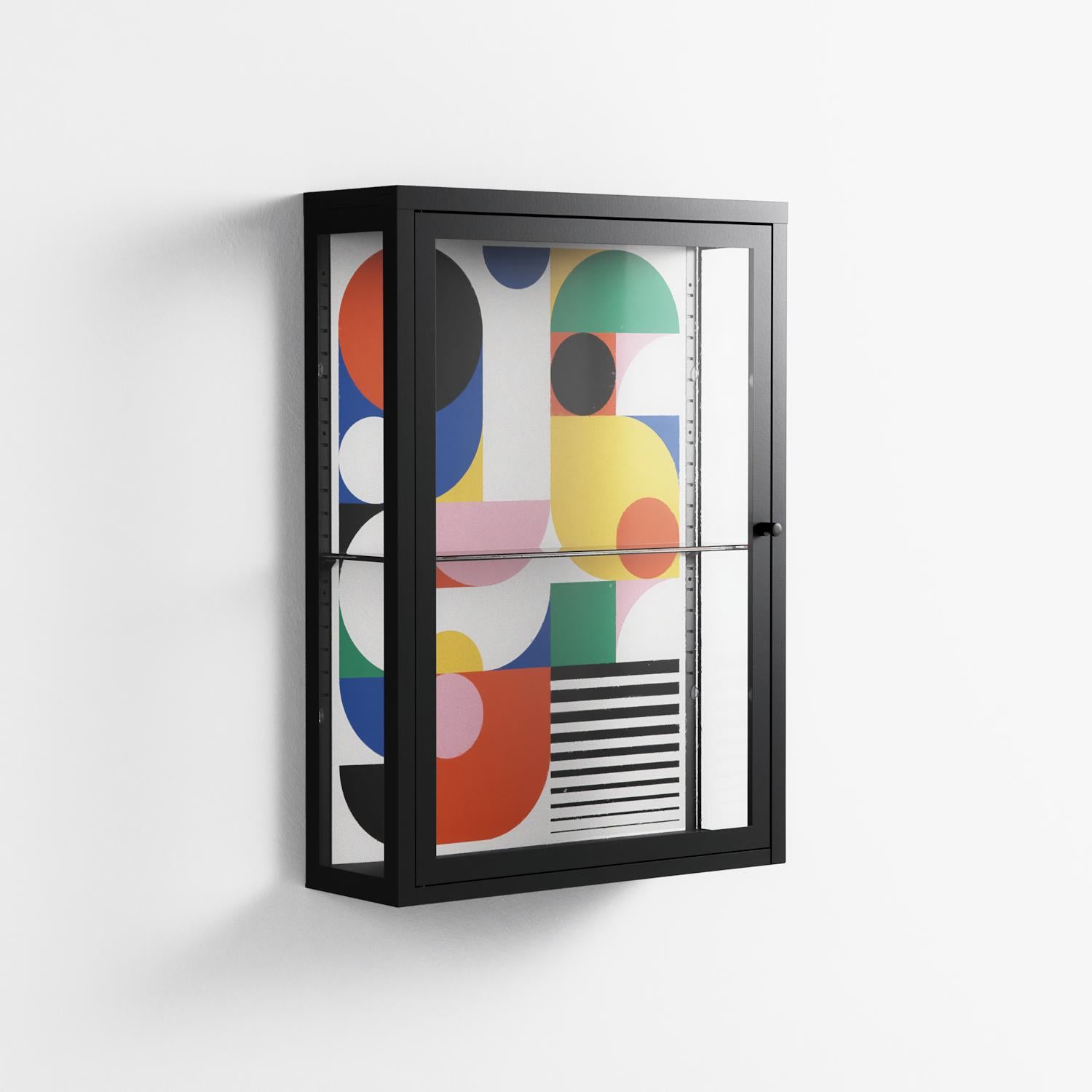 Vitrine pairs artworks by artists, designers, and creatives from around the world with a frame that elevates and displays them in everyday space. The cabinet is built from precision-cut metal with a powder-coated finish — resistant to wear and crafted for stability — making it ideal for both office and home spaces.