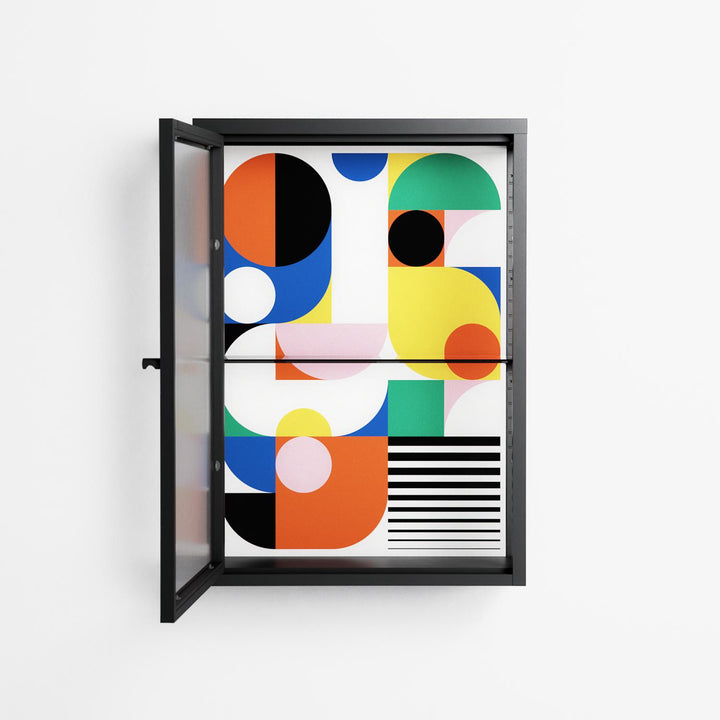 Vitrine pairs artworks by artists, designers, and creatives from around the world with a frame that elevates and displays them in everyday space. The cabinet is built from precision-cut metal with a powder-coated finish — resistant to wear and crafted for stability — making it ideal for both office and home spaces.