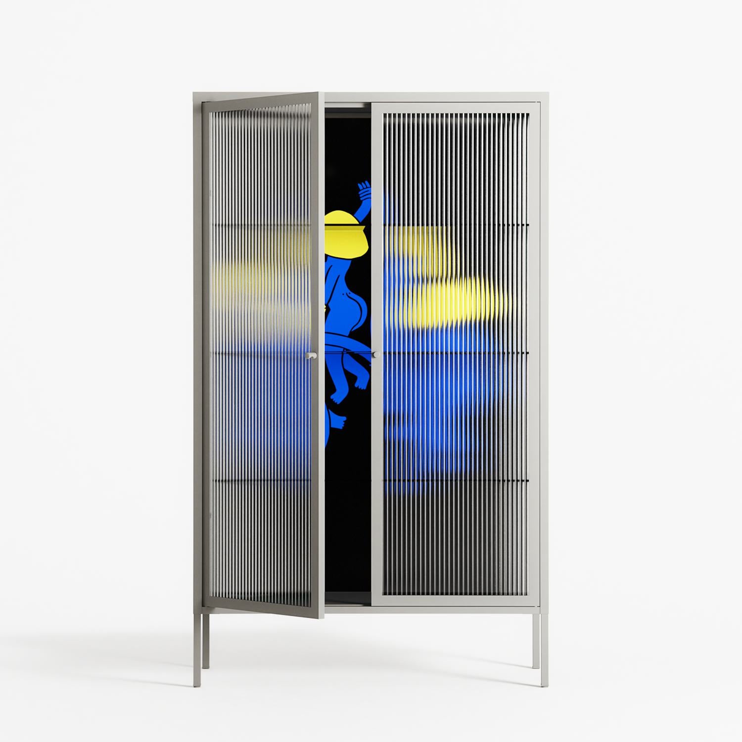 Vitrine pairs artworks by artists, designers, and creatives from around the world with a frame that elevates and displays them in everyday space. The cabinet is built from precision-cut metal with a powder-coated finish — resistant to wear and crafted for stability — making it ideal for both office and home spaces.