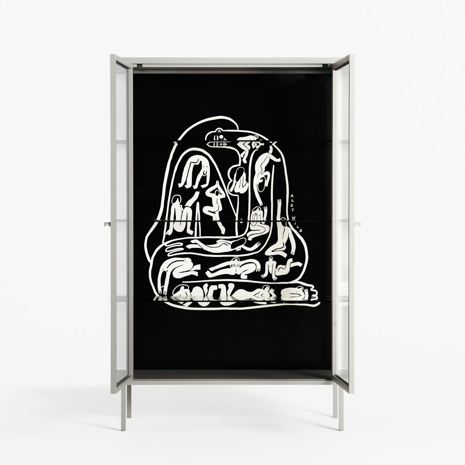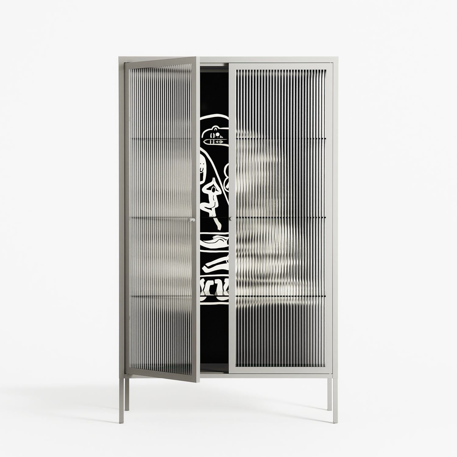 Vitrine pairs artworks by artists, designers, and creatives from around the world with a frame that elevates and displays them in everyday space. The cabinet is built from precision-cut metal with a powder-coated finish — resistant to wear and crafted for stability — making it ideal for both office and home spaces.