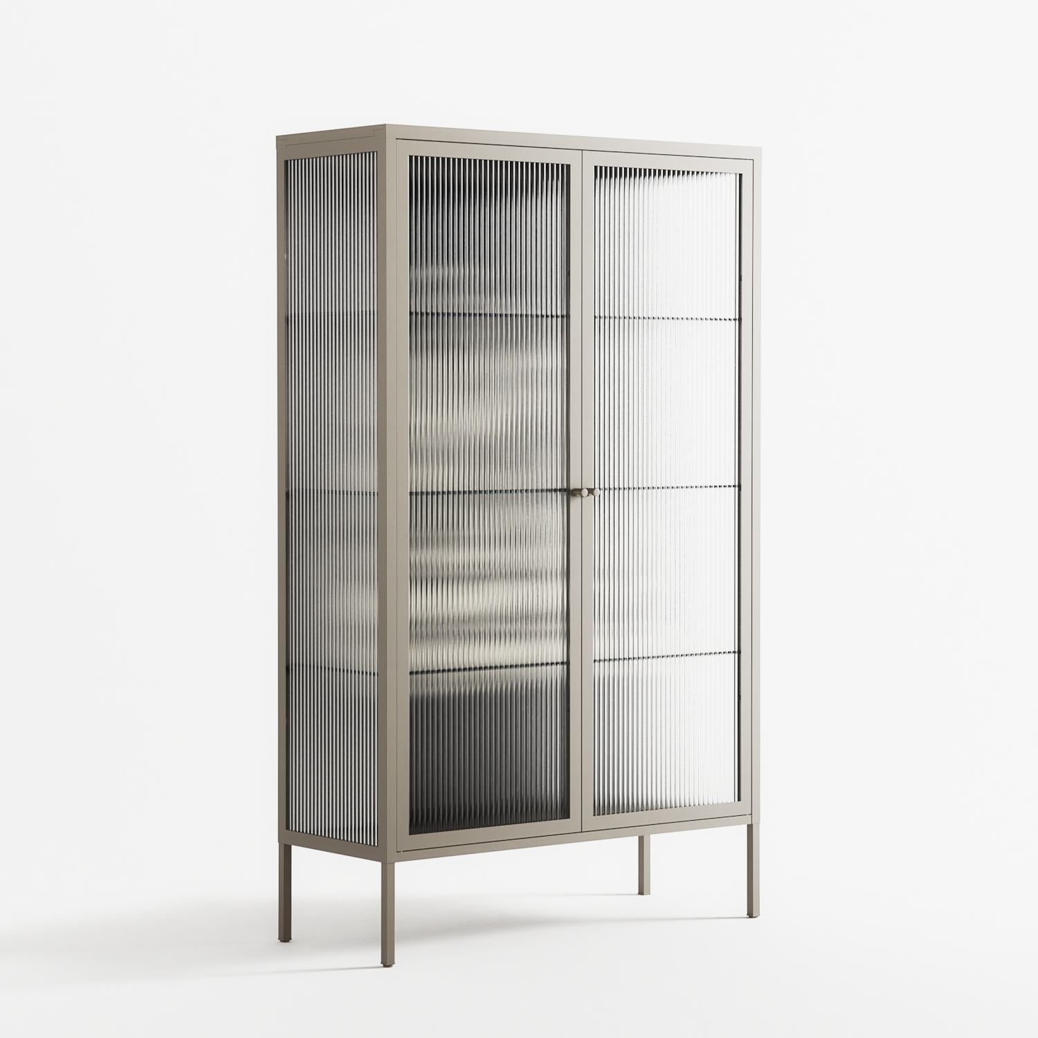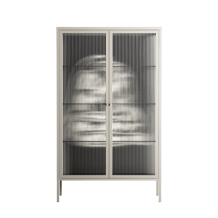 Nudes on Nudes by Aley Wild, displayed within the Vitrine Cabinet behind Reeded glass. Finished in the colour Pebble, the cabinet becomes a frame for the artwork and the objects within.