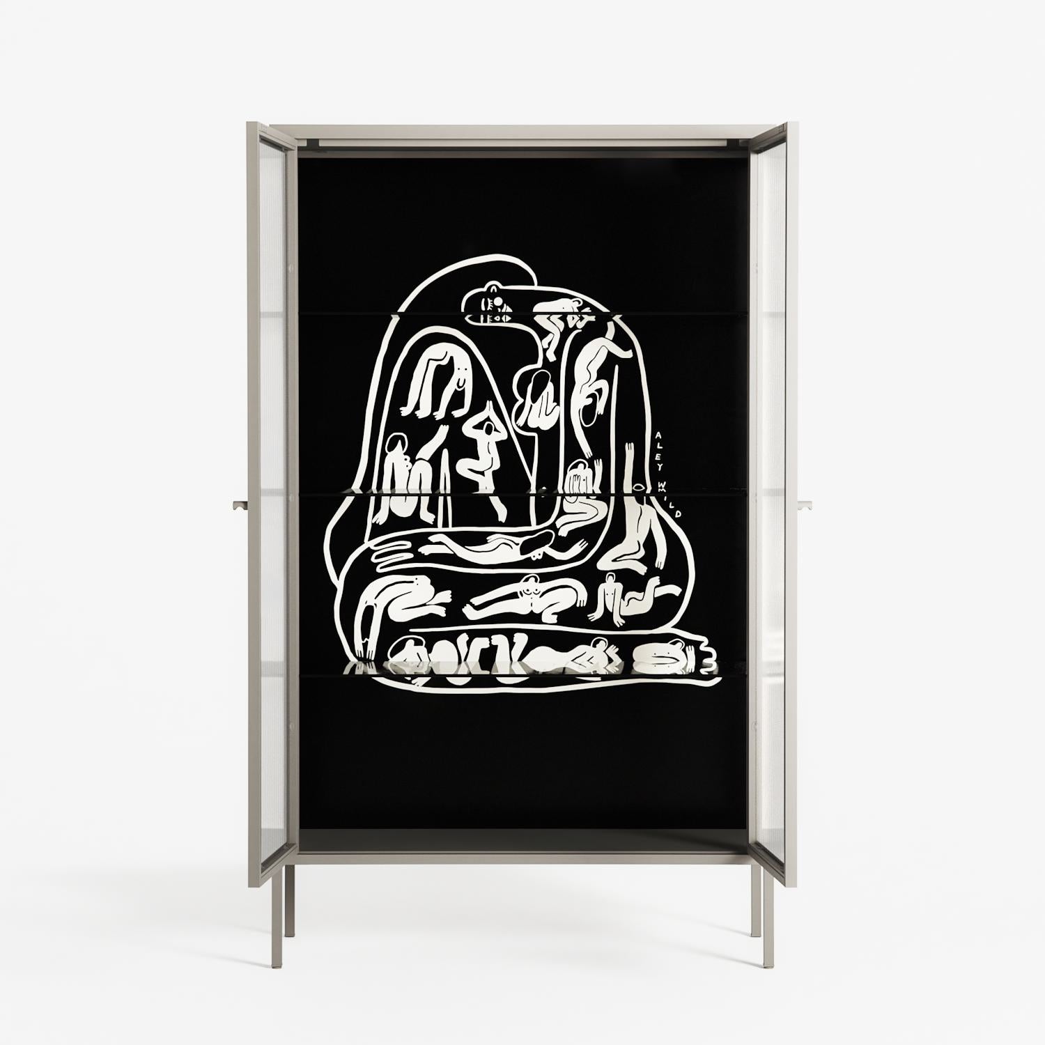 Vitrine pairs artworks by artists, designers, and creatives from around the world with a frame that elevates and displays them in everyday space. The cabinet is built from precision-cut metal with a powder-coated finish — resistant to wear and crafted for stability — making it ideal for both office and home spaces.