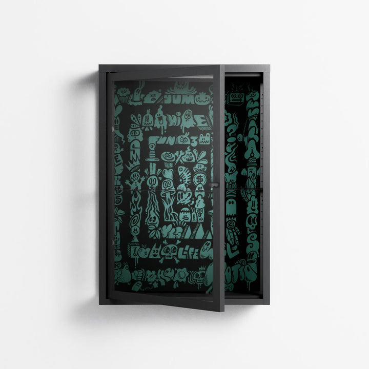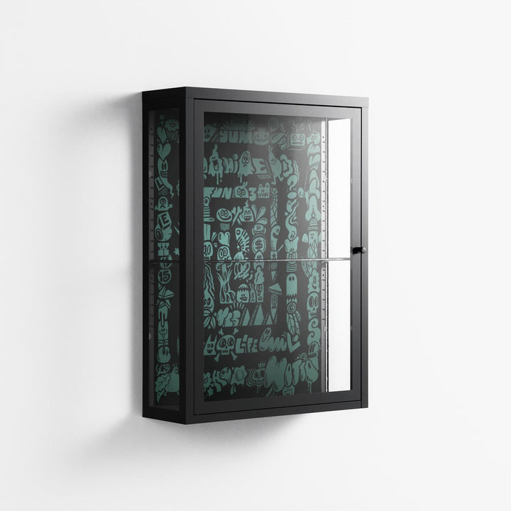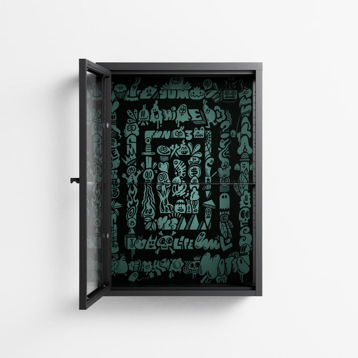 Vitrine pairs artworks by artists, designers, and creatives from around the world with a frame that elevates and displays them in everyday space. The cabinet is built from precision-cut metal with a powder-coated finish — resistant to wear and crafted for stability — making it ideal for both office and home spaces.
