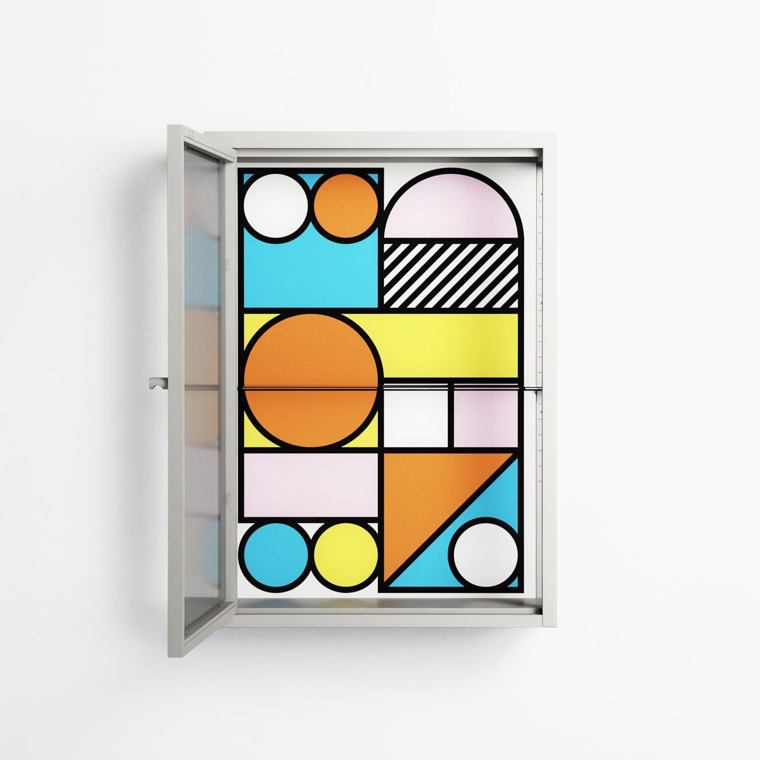 Vitrine pairs artworks by artists, designers, and creatives from around the world with a frame that elevates and displays them in everyday space. The cabinet is built from precision-cut metal with a powder-coated finish — resistant to wear and crafted for stability — making it ideal for both office and home spaces.