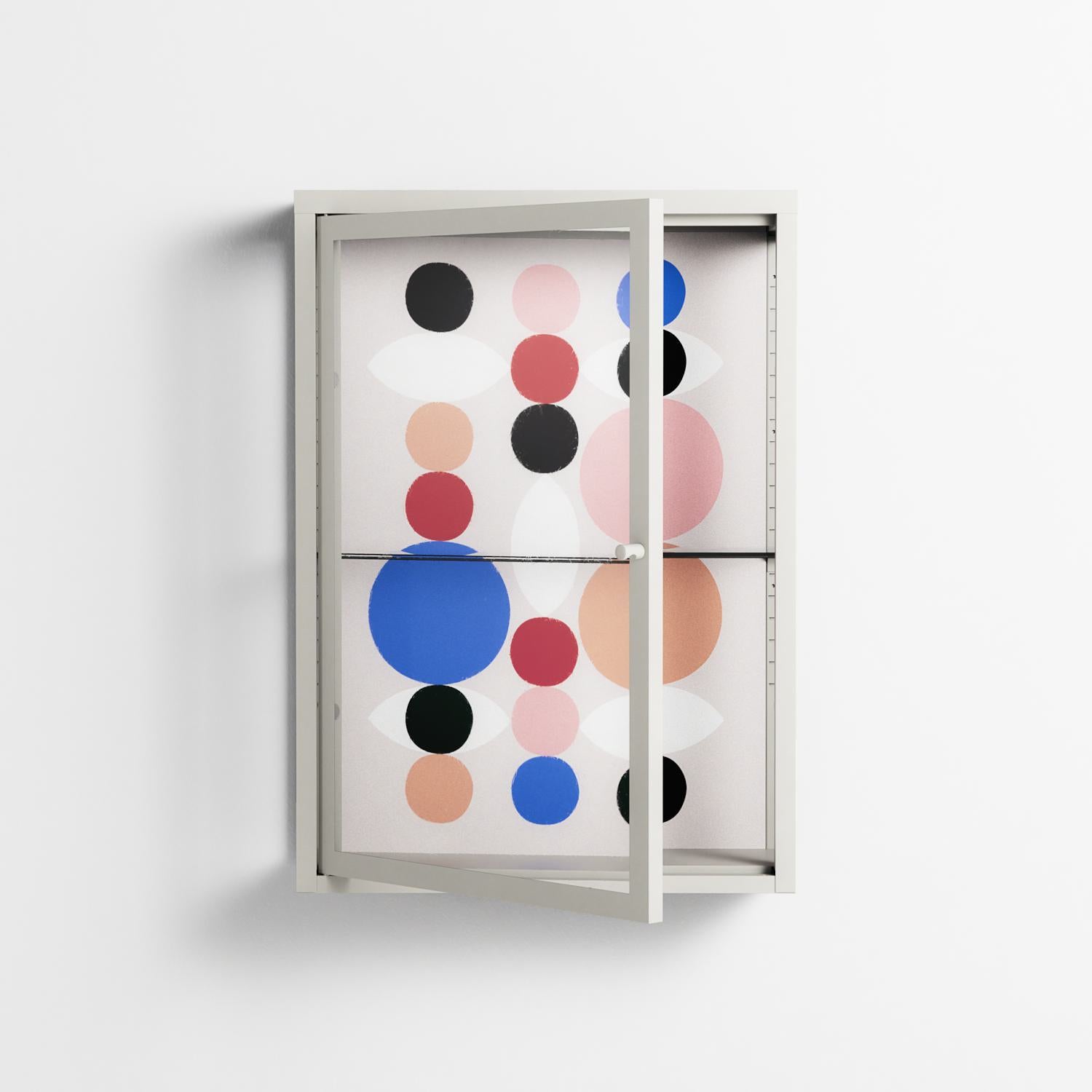Vitrine pairs artworks by artists, designers, and creatives from around the world with a frame that elevates and displays them in everyday space. The cabinet is built from precision-cut metal with a powder-coated finish — resistant to wear and crafted for stability — making it ideal for both office and home spaces.