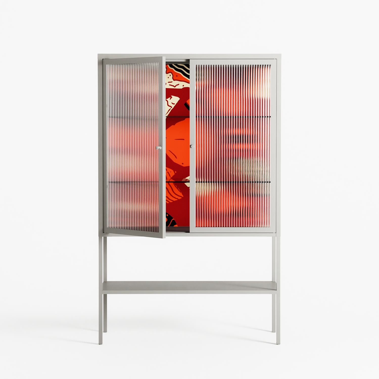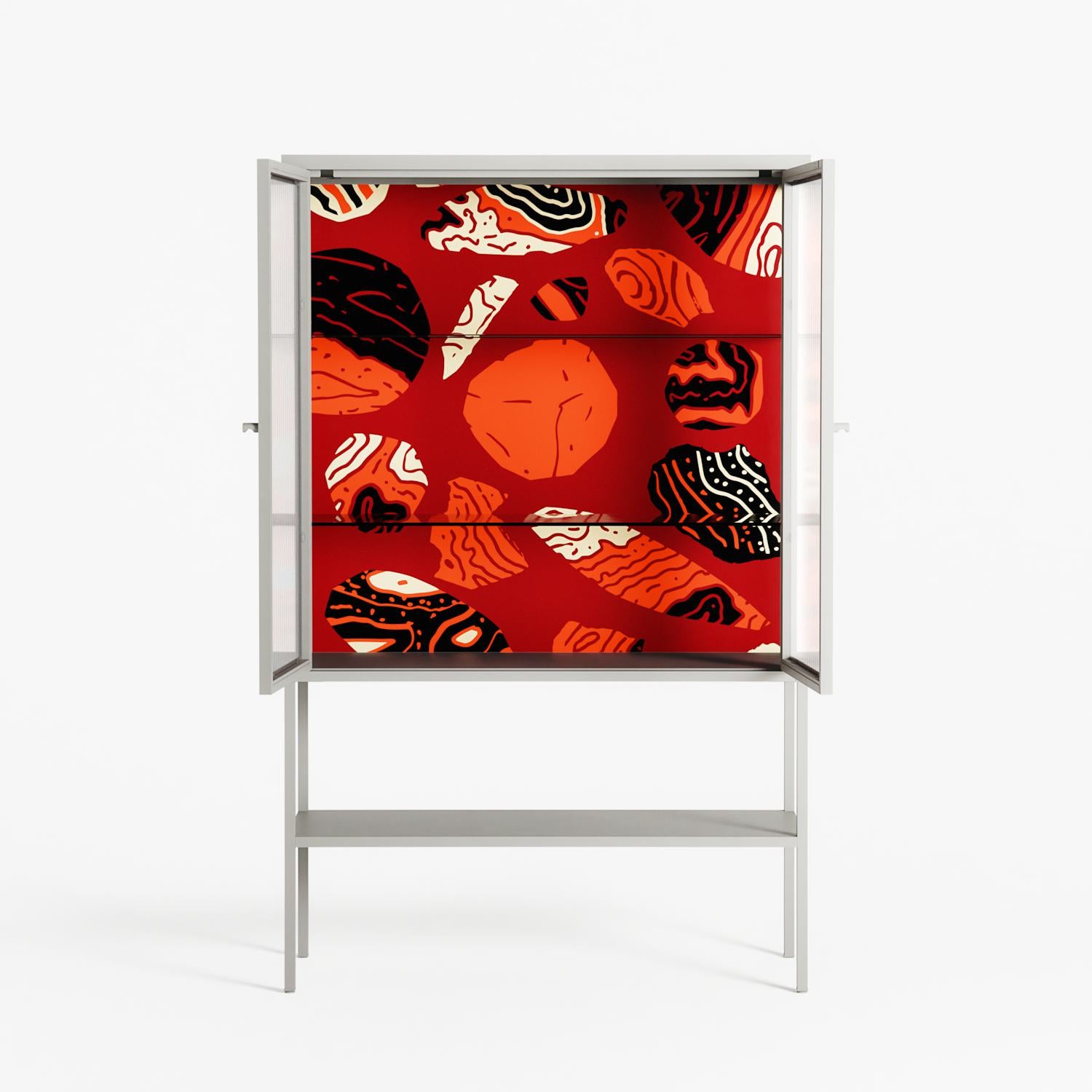 Vitrine pairs artworks by artists, designers, and creatives from around the world with a frame that elevates and displays them in everyday space. The cabinet is built from precision-cut metal with a powder-coated finish — resistant to wear and crafted for stability — making it ideal for both office and home spaces.