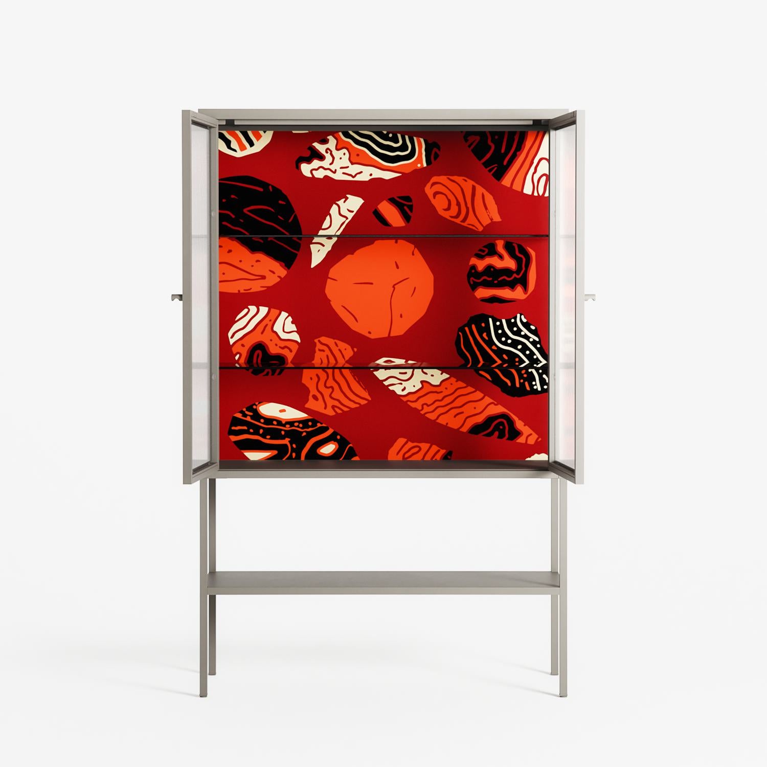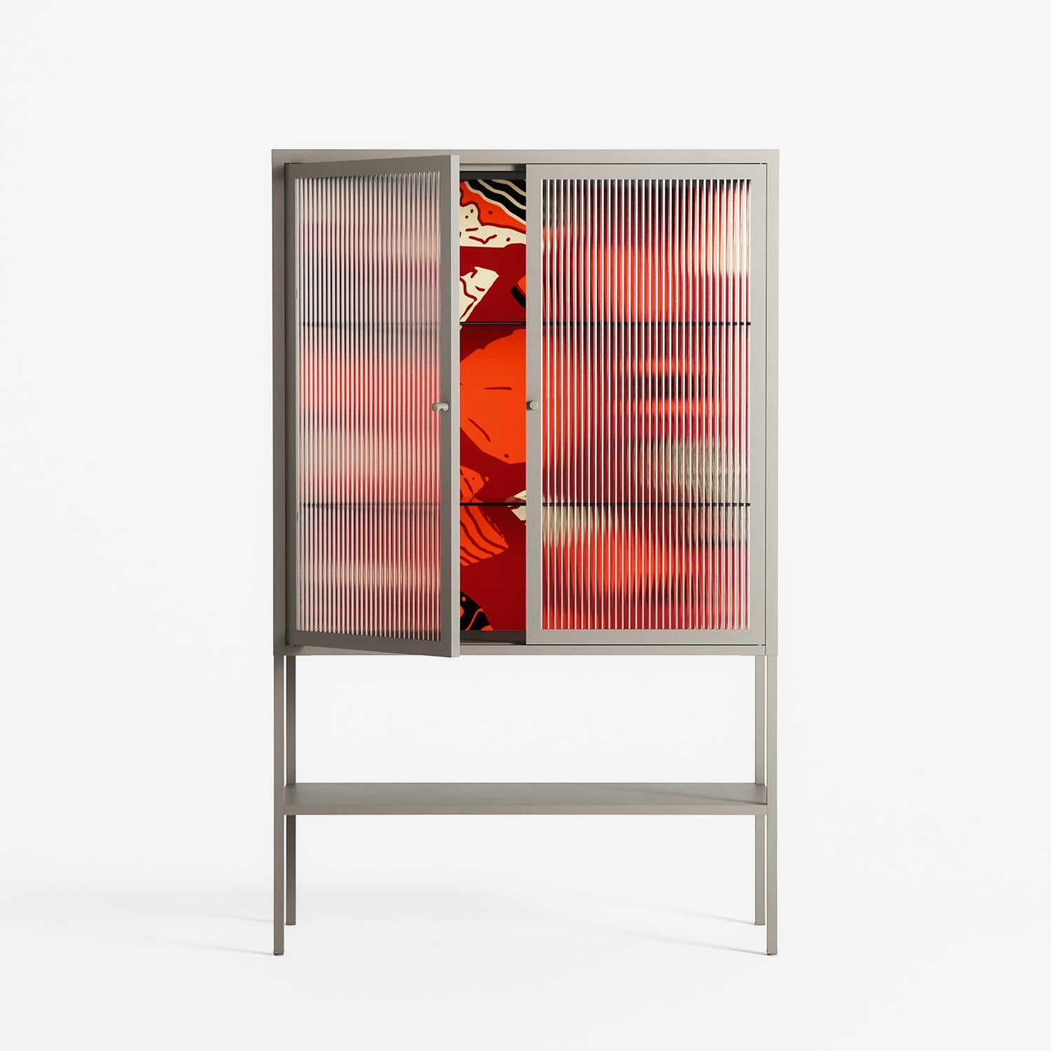 Vitrine pairs artworks by artists, designers, and creatives from around the world with a frame that elevates and displays them in everyday space. The cabinet is built from precision-cut metal with a powder-coated finish — resistant to wear and crafted for stability — making it ideal for both office and home spaces.