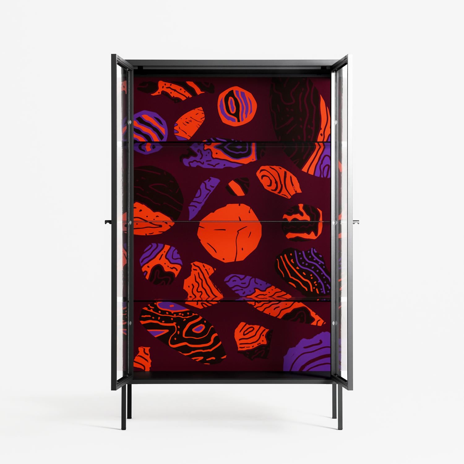 Vitrine pairs artworks by artists, designers, and creatives from around the world with a frame that elevates and displays them in everyday space. The cabinet is built from precision-cut metal with a powder-coated finish — resistant to wear and crafted for stability — making it ideal for both office and home spaces.