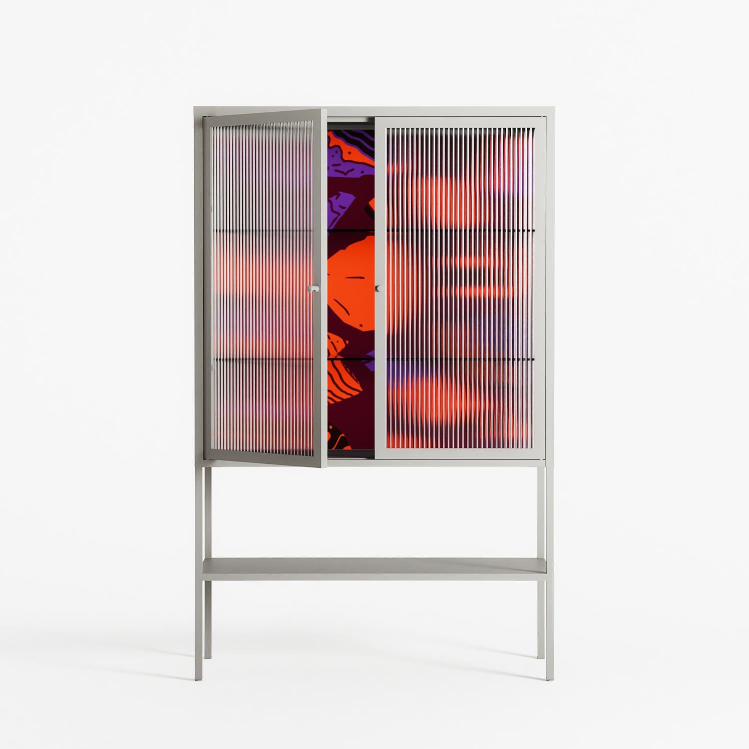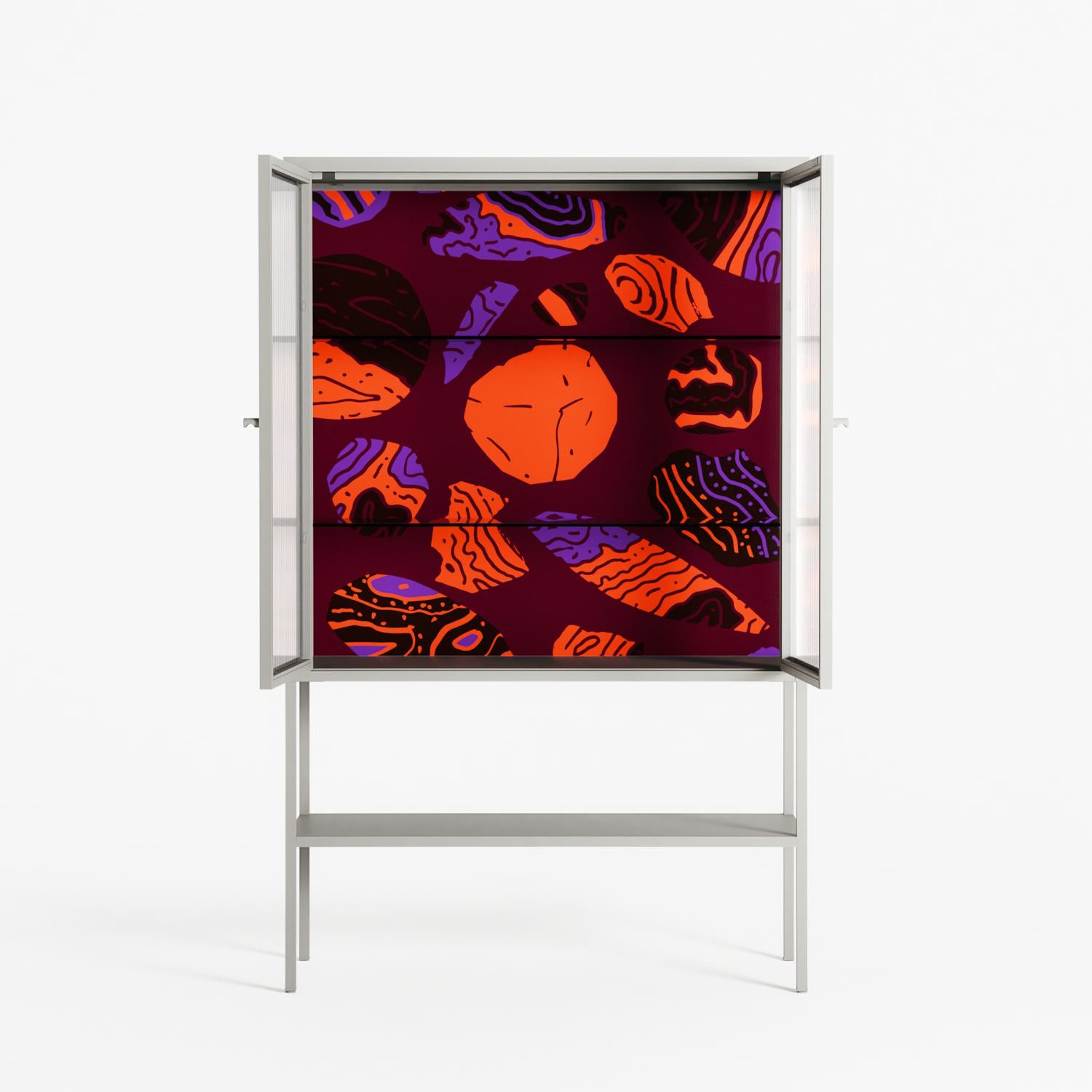 Vitrine pairs artworks by artists, designers, and creatives from around the world with a frame that elevates and displays them in everyday space. The cabinet is built from precision-cut metal with a powder-coated finish — resistant to wear and crafted for stability — making it ideal for both office and home spaces.