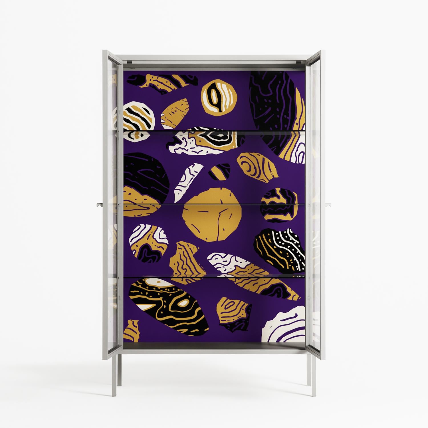Vitrine pairs artworks by artists, designers, and creatives from around the world with a frame that elevates and displays them in everyday space. The cabinet is built from precision-cut metal with a powder-coated finish — resistant to wear and crafted for stability — making it ideal for both office and home spaces.