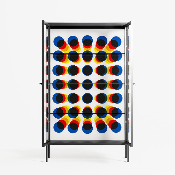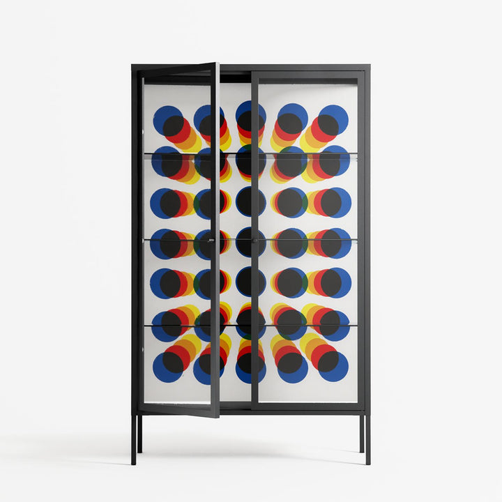 Vitrine pairs artworks by artists, designers, and creatives from around the world with a frame that elevates and displays them in everyday space. The cabinet is built from precision-cut metal with a powder-coated finish — resistant to wear and crafted for stability — making it ideal for both office and home spaces.