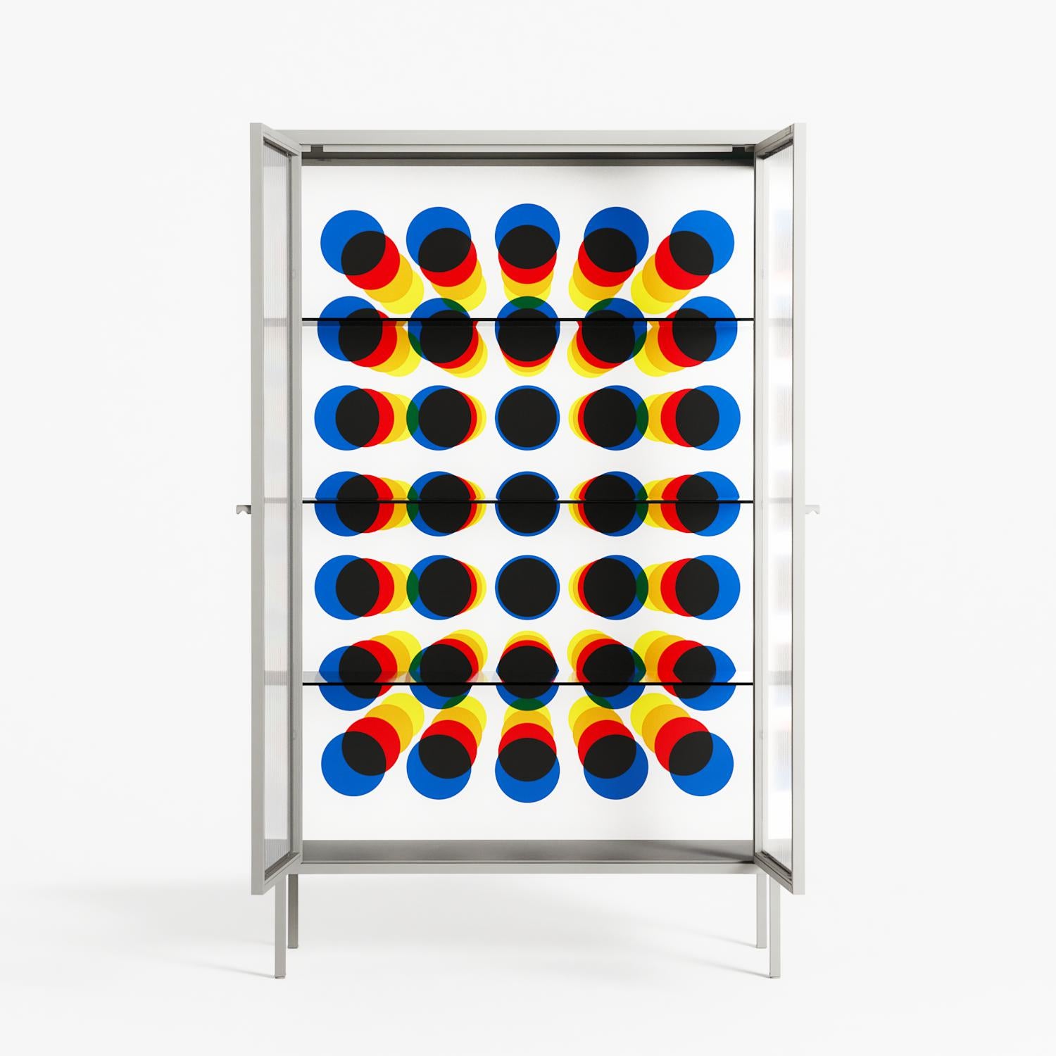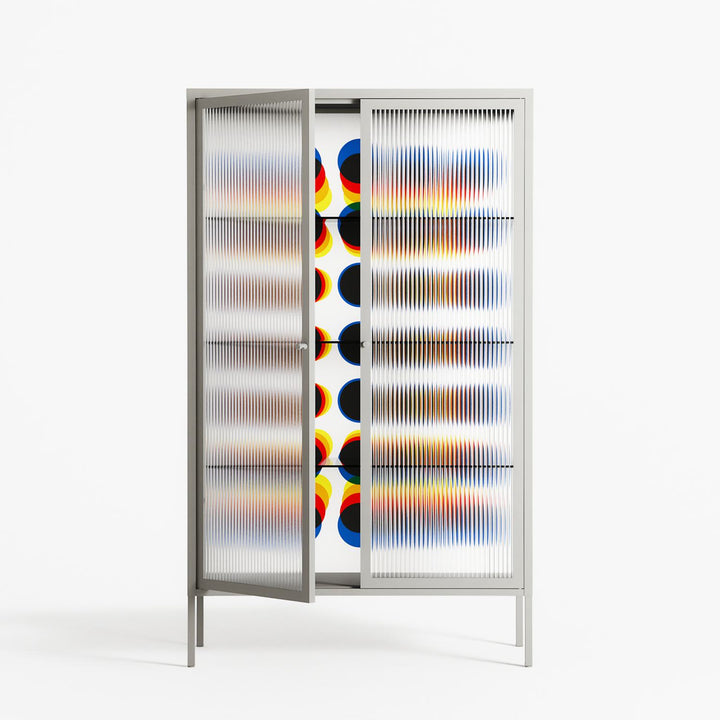 Vitrine pairs artworks by artists, designers, and creatives from around the world with a frame that elevates and displays them in everyday space. The cabinet is built from precision-cut metal with a powder-coated finish — resistant to wear and crafted for stability — making it ideal for both office and home spaces.