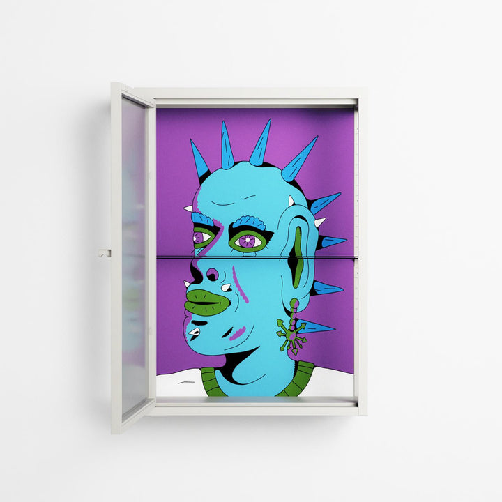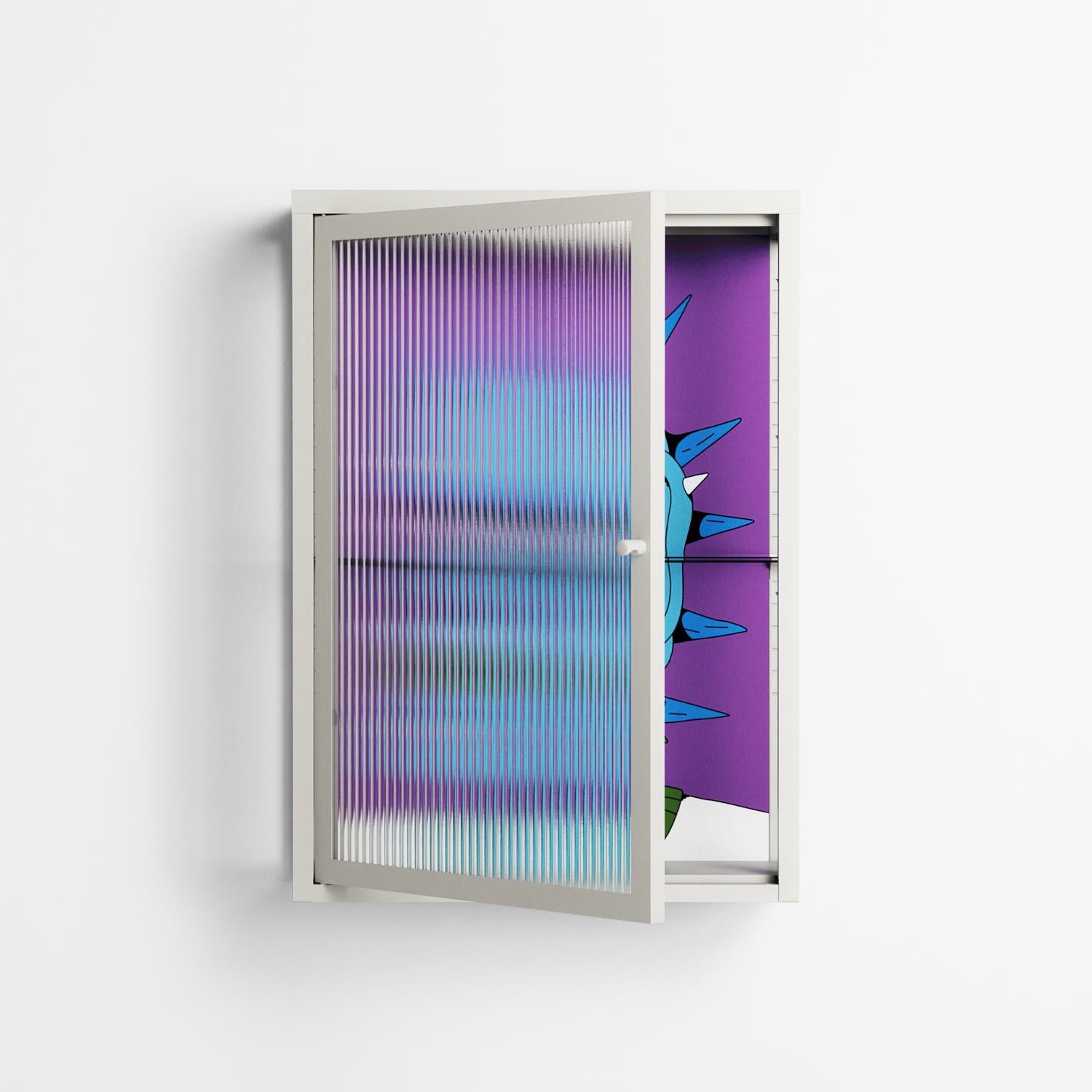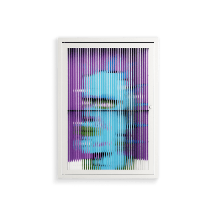 Vitrine pairs artworks by artists, designers, and creatives from around the world with a frame that elevates and displays them in everyday space. The cabinet is built from precision-cut metal with a powder-coated finish — resistant to wear and crafted for stability — making it ideal for both office and home spaces.