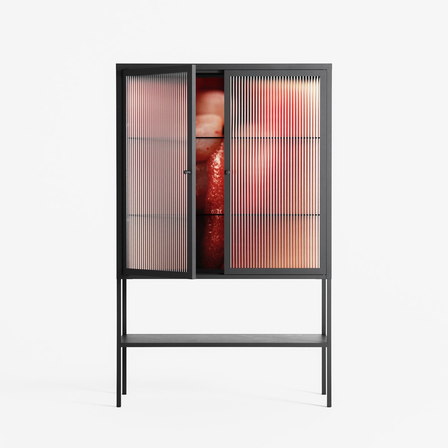 Red 3 - Loft Cabinet - Nadia Ryder - Antracite - Reeded glass