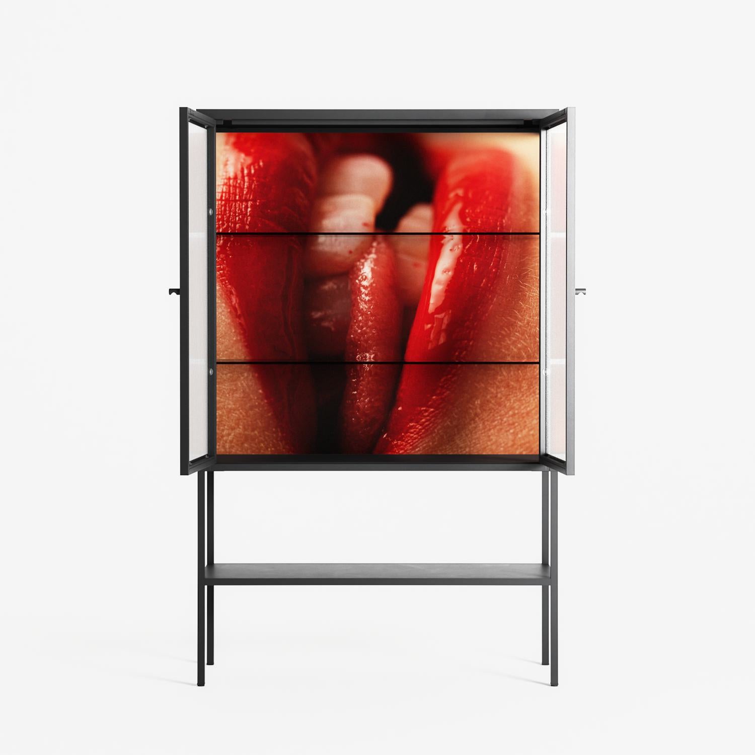 Vitrine pairs artworks by artists, designers, and creatives from around the world with a frame that elevates and displays them in everyday space. The cabinet is built from precision-cut metal with a powder-coated finish — resistant to wear and crafted for stability — making it ideal for both office and home spaces.