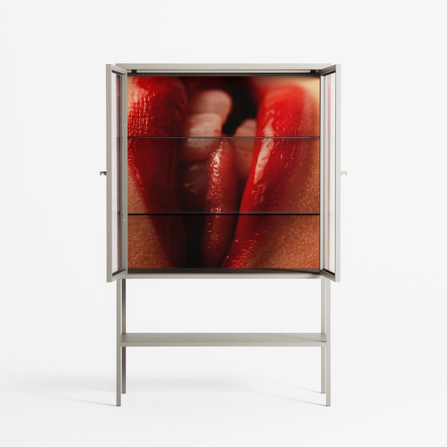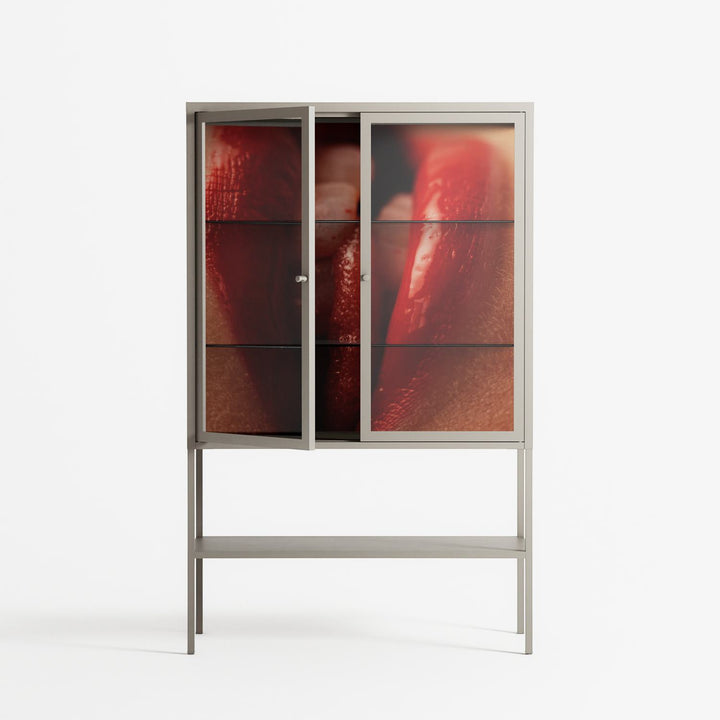 Vitrine pairs artworks by artists, designers, and creatives from around the world with a frame that elevates and displays them in everyday space. The cabinet is built from precision-cut metal with a powder-coated finish — resistant to wear and crafted for stability — making it ideal for both office and home spaces.