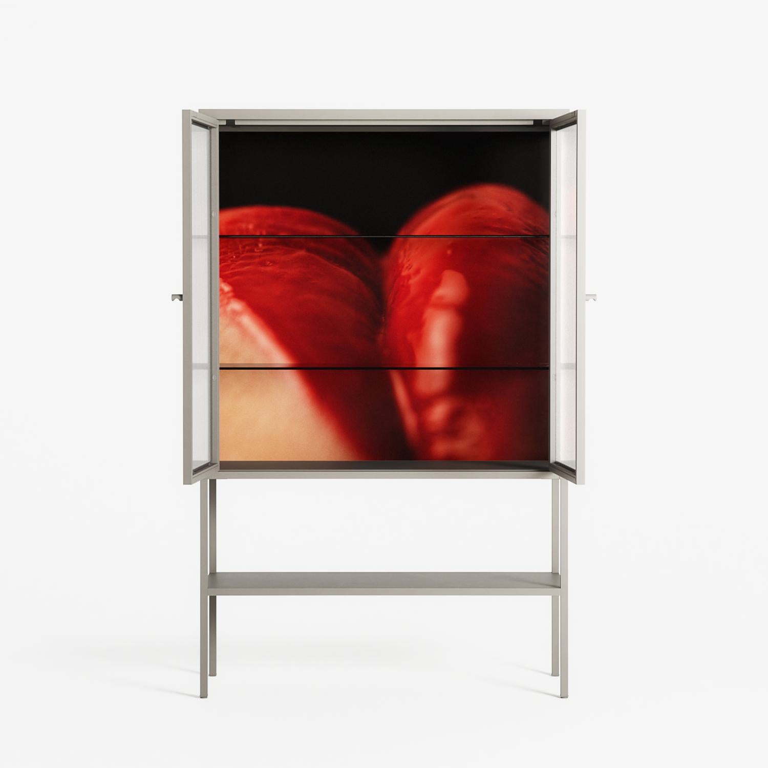 Vitrine pairs artworks by artists, designers, and creatives from around the world with a frame that elevates and displays them in everyday space. The cabinet is built from precision-cut metal with a powder-coated finish — resistant to wear and crafted for stability — making it ideal for both office and home spaces.