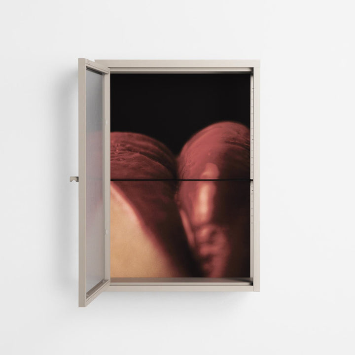 Vitrine pairs artworks by artists, designers, and creatives from around the world with a frame that elevates and displays them in everyday space. The cabinet is built from precision-cut metal with a powder-coated finish — resistant to wear and crafted for stability — making it ideal for both office and home spaces.
