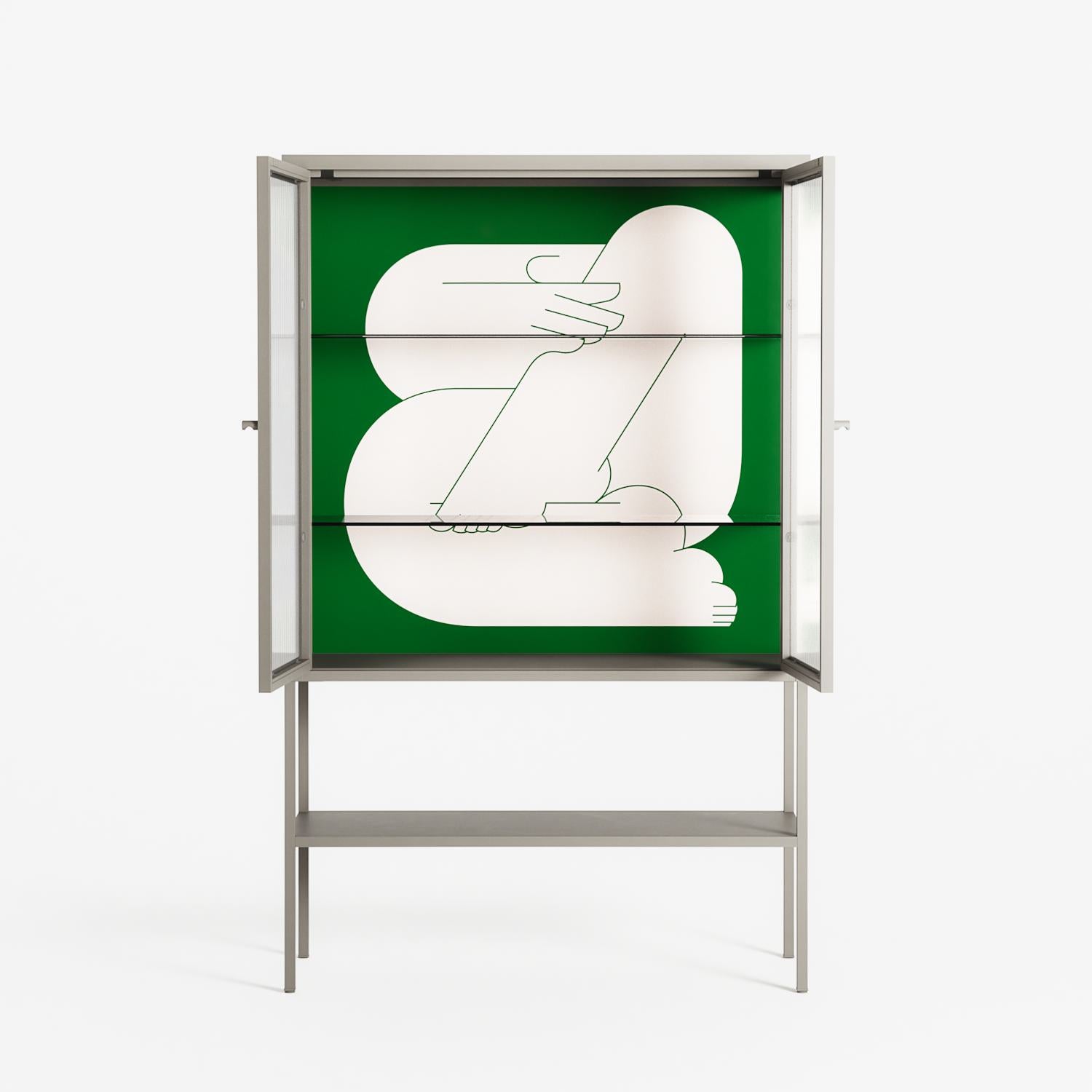 Vitrine pairs artworks by artists, designers, and creatives from around the world with a frame that elevates and displays them in everyday space. The cabinet is built from precision-cut metal with a powder-coated finish — resistant to wear and crafted for stability — making it ideal for both office and home spaces.