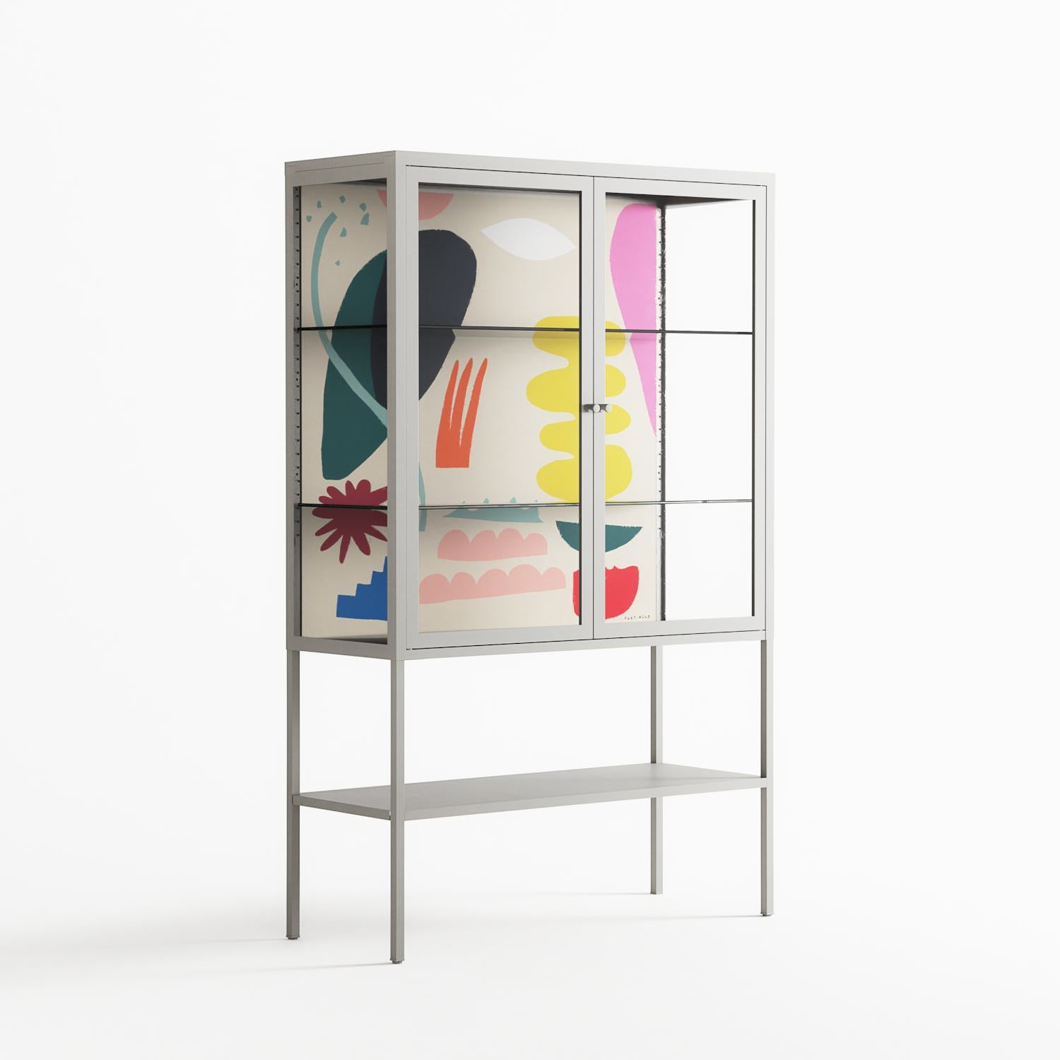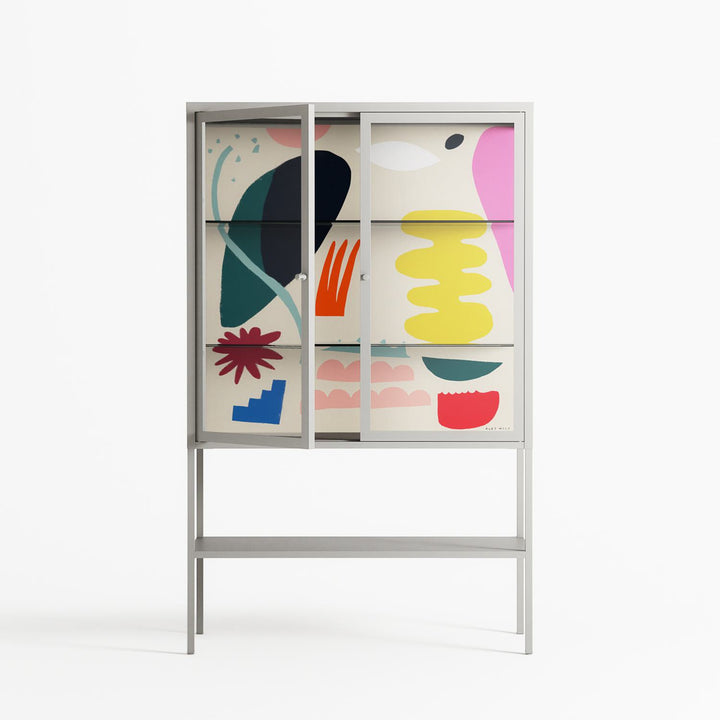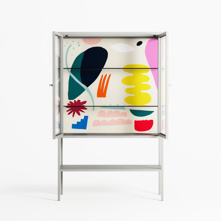 Vitrine pairs artworks by artists, designers, and creatives from around the world with a frame that elevates and displays them in everyday space. The cabinet is built from precision-cut metal with a powder-coated finish — resistant to wear and crafted for stability — making it ideal for both office and home spaces.