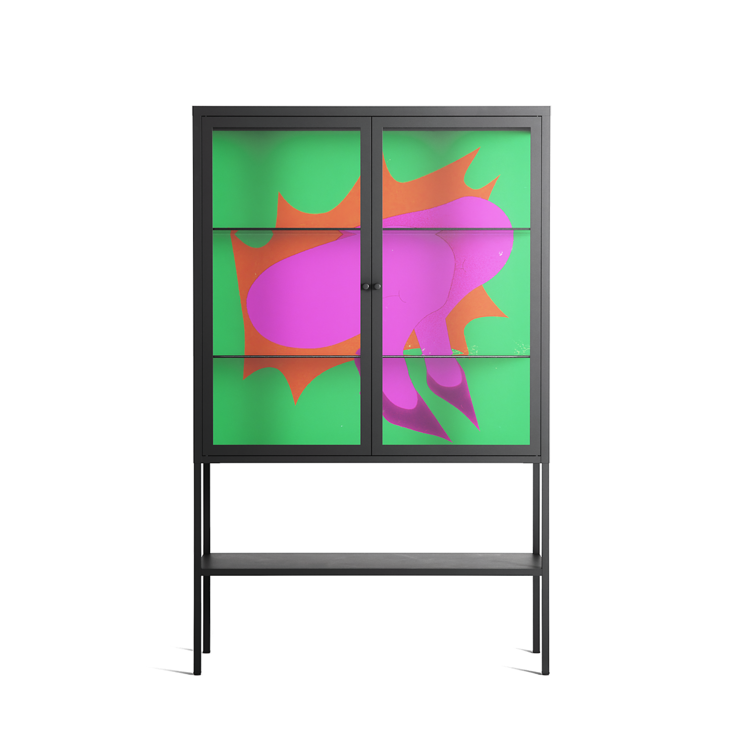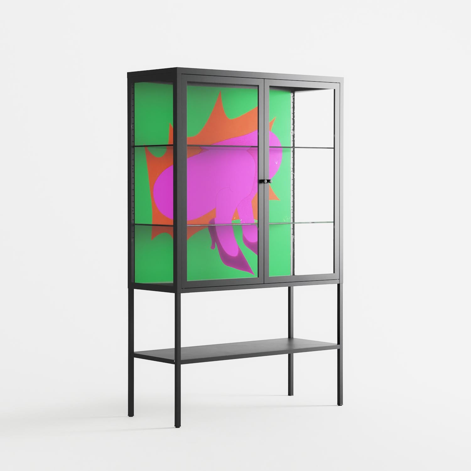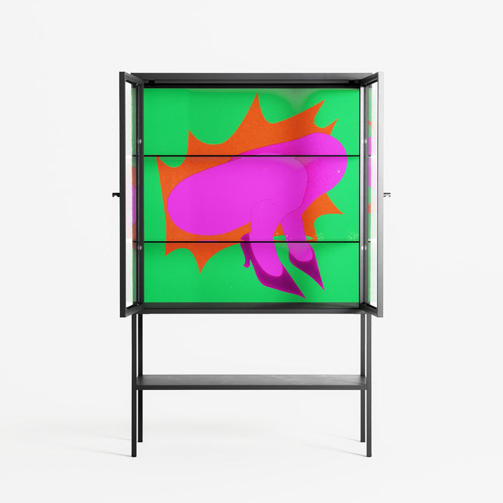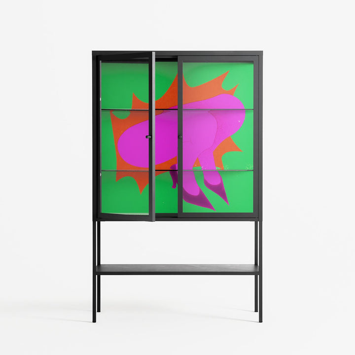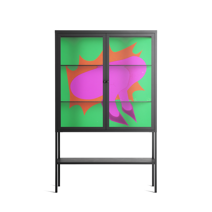 Vitrine pairs artworks by artists, designers, and creatives from around the world with a frame that elevates and displays them in everyday space. The cabinet is built from precision-cut metal with a powder-coated finish — resistant to wear and crafted for stability — making it ideal for both office and home spaces.