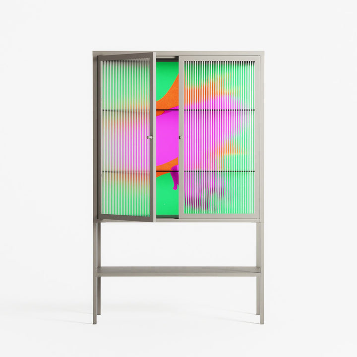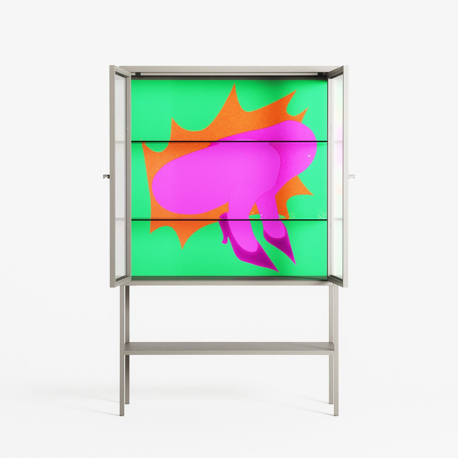 Vitrine pairs artworks by artists, designers, and creatives from around the world with a frame that elevates and displays them in everyday space. The cabinet is built from precision-cut metal with a powder-coated finish — resistant to wear and crafted for stability — making it ideal for both office and home spaces.