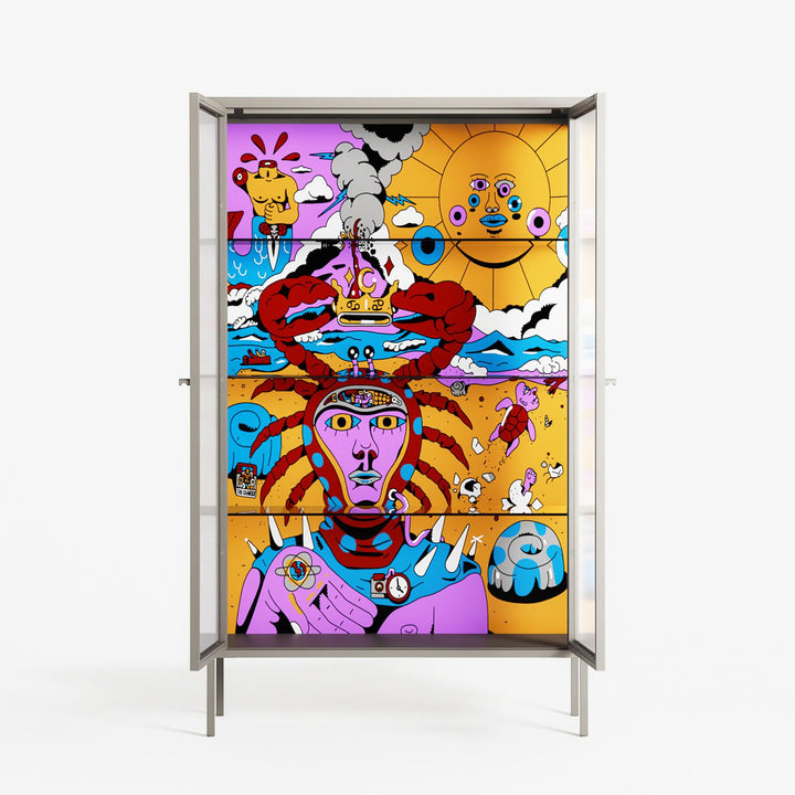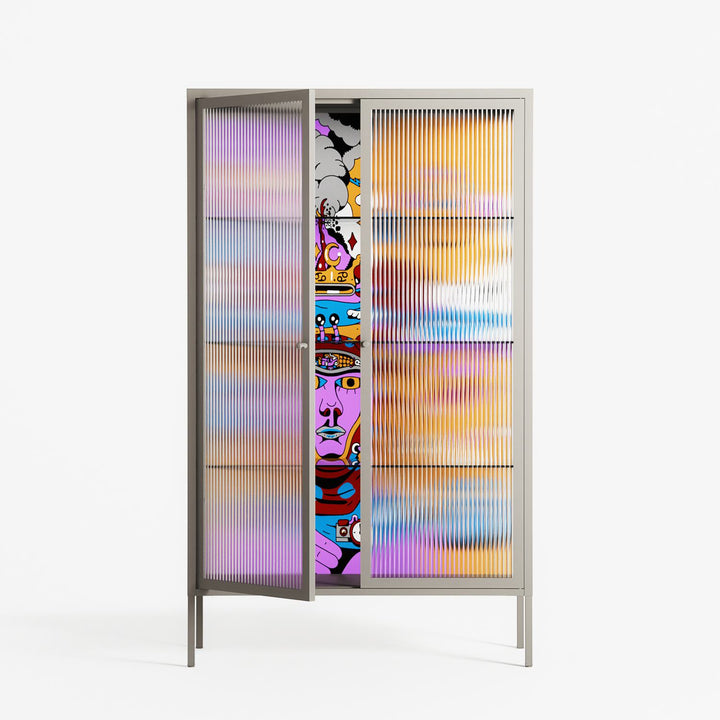 Vitrine pairs artworks by artists, designers, and creatives from around the world with a frame that elevates and displays them in everyday space. The cabinet is built from precision-cut metal with a powder-coated finish — resistant to wear and crafted for stability — making it ideal for both office and home spaces.