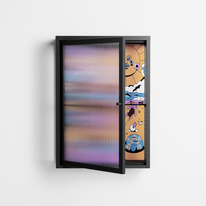 Vitrine pairs artworks by artists, designers, and creatives from around the world with a frame that elevates and displays them in everyday space. The cabinet is built from precision-cut metal with a powder-coated finish — resistant to wear and crafted for stability — making it ideal for both office and home spaces.