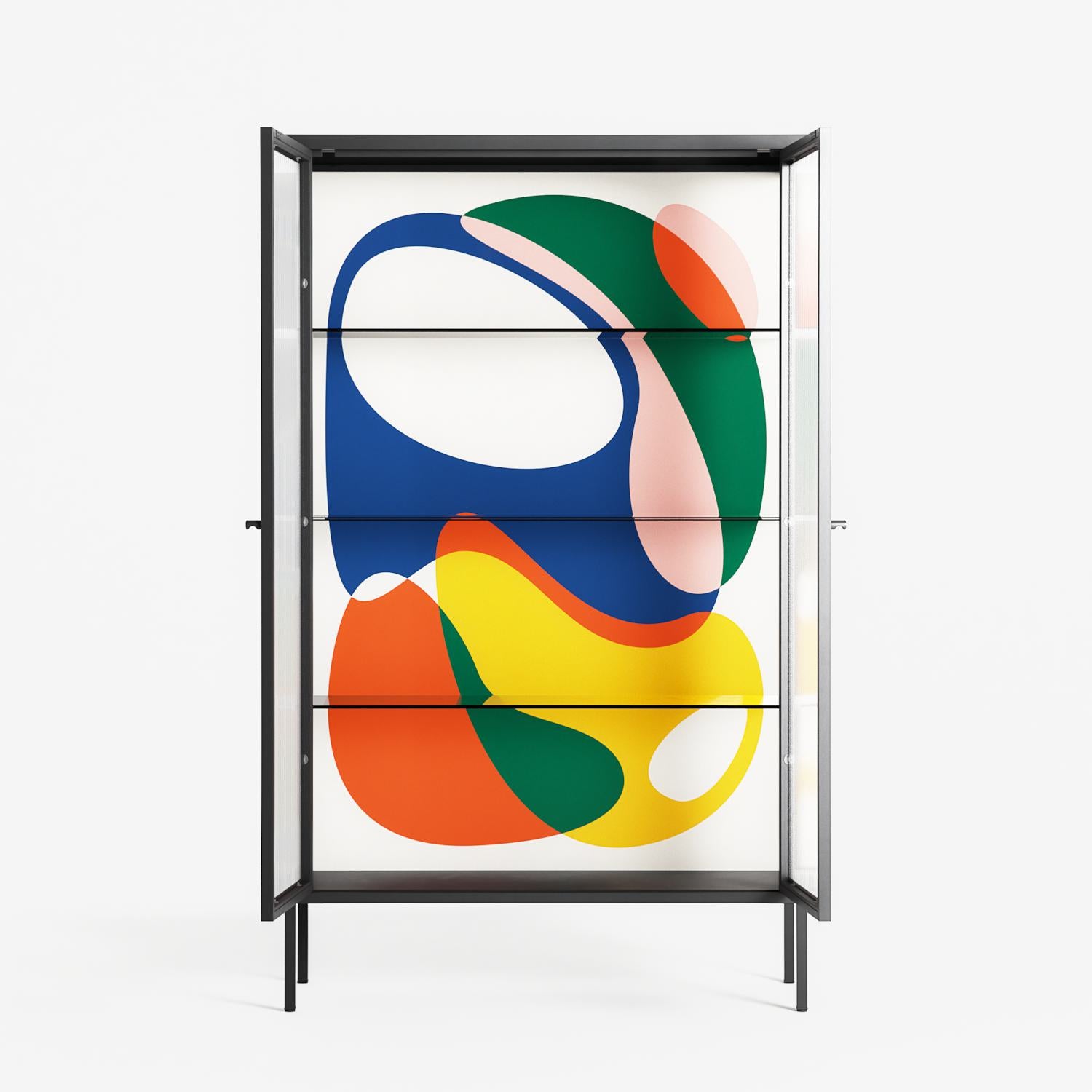 Vitrine pairs artworks by artists, designers, and creatives from around the world with a frame that elevates and displays them in everyday space. The cabinet is built from precision-cut metal with a powder-coated finish — resistant to wear and crafted for stability — making it ideal for both office and home spaces.