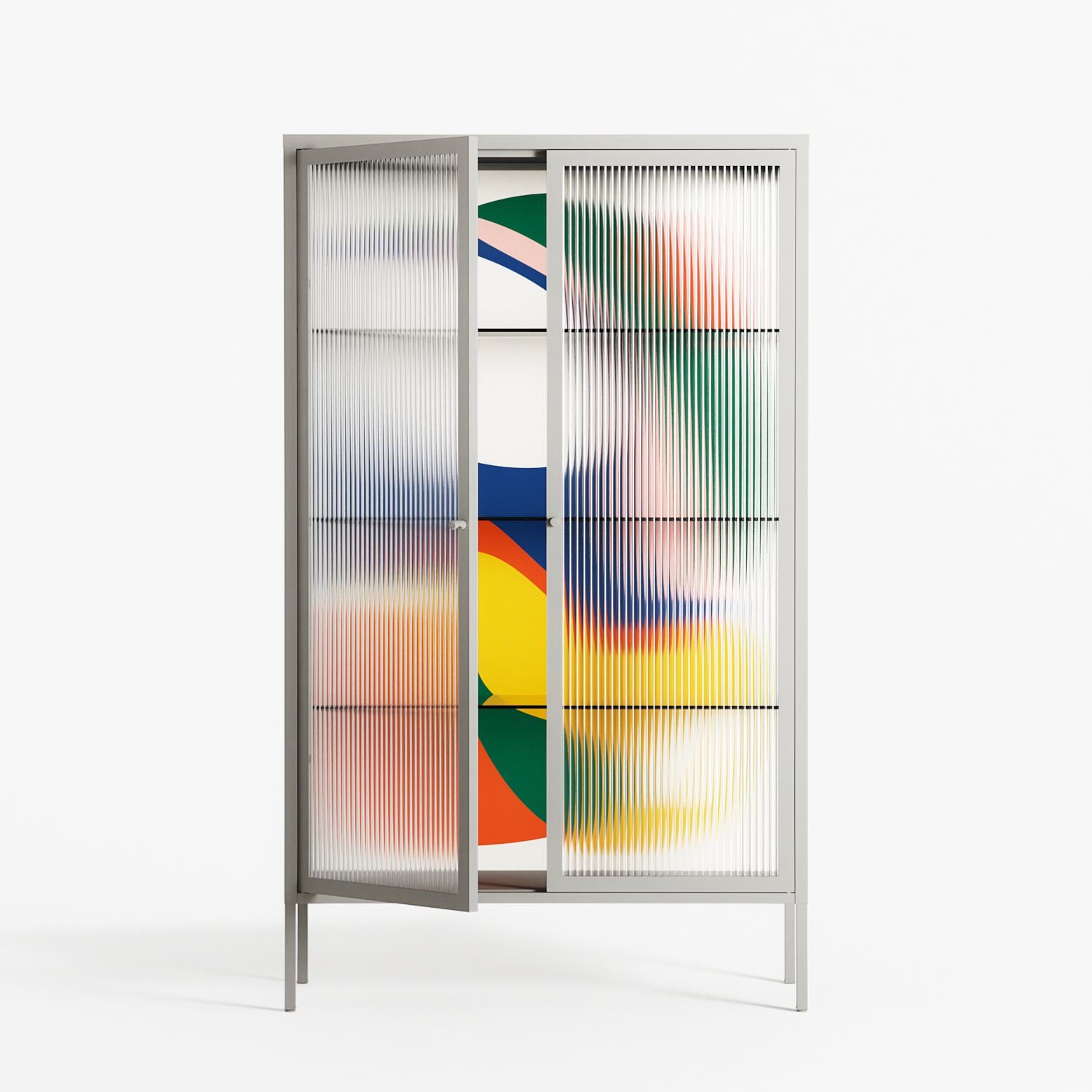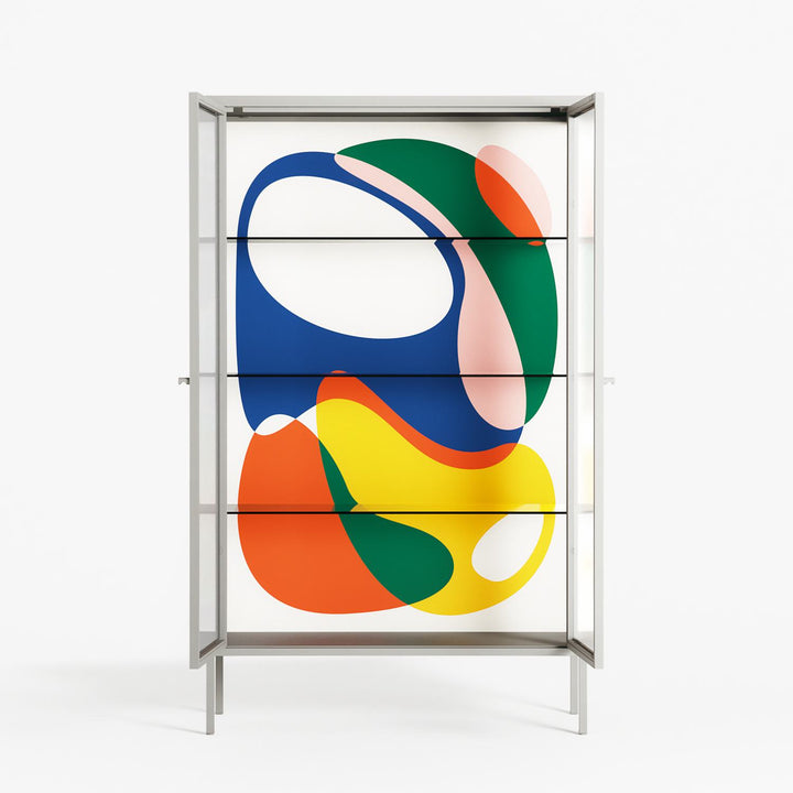 Vitrine pairs artworks by artists, designers, and creatives from around the world with a frame that elevates and displays them in everyday space. The cabinet is built from precision-cut metal with a powder-coated finish — resistant to wear and crafted for stability — making it ideal for both office and home spaces.