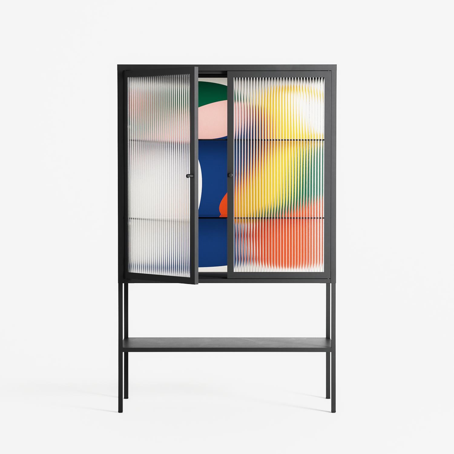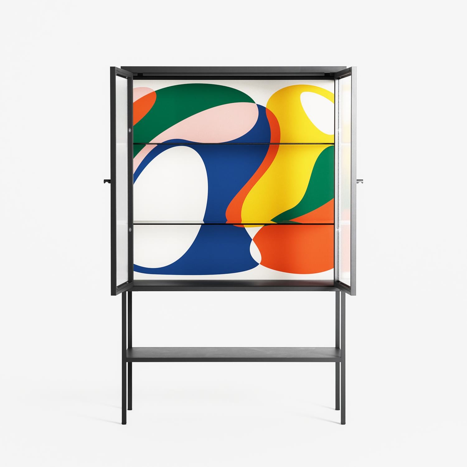 Vitrine pairs artworks by artists, designers, and creatives from around the world with a frame that elevates and displays them in everyday space. The cabinet is built from precision-cut metal with a powder-coated finish — resistant to wear and crafted for stability — making it ideal for both office and home spaces.