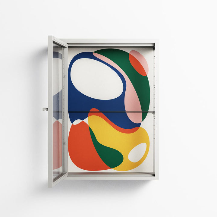 Vitrine pairs artworks by artists, designers, and creatives from around the world with a frame that elevates and displays them in everyday space. The cabinet is built from precision-cut metal with a powder-coated finish — resistant to wear and crafted for stability — making it ideal for both office and home spaces.