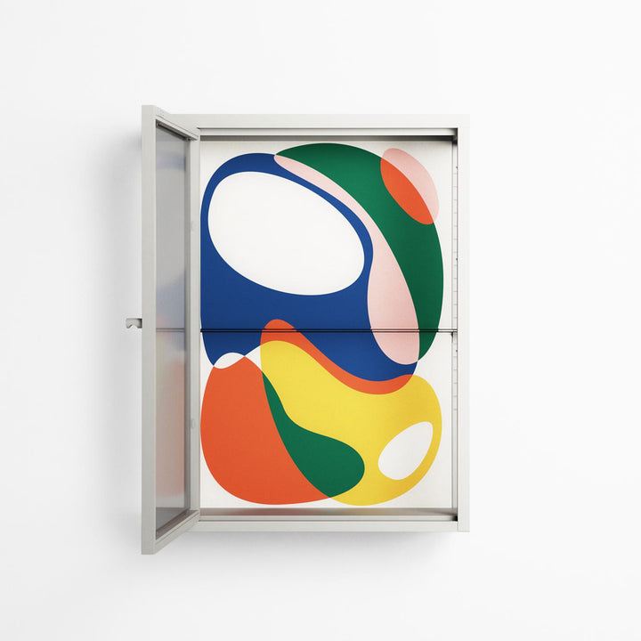 Vitrine pairs artworks by artists, designers, and creatives from around the world with a frame that elevates and displays them in everyday space. The cabinet is built from precision-cut metal with a powder-coated finish — resistant to wear and crafted for stability — making it ideal for both office and home spaces.