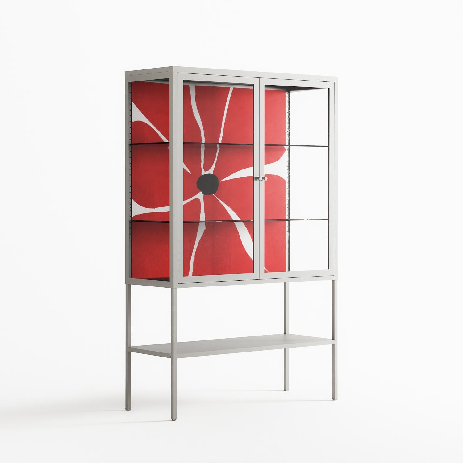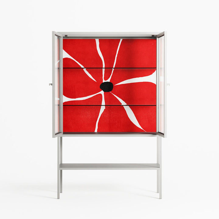 Vitrine pairs artworks by artists, designers, and creatives from around the world with a frame that elevates and displays them in everyday space. The cabinet is built from precision-cut metal with a powder-coated finish — resistant to wear and crafted for stability — making it ideal for both office and home spaces.