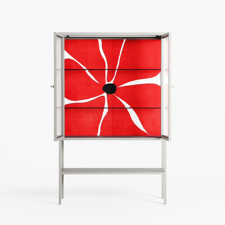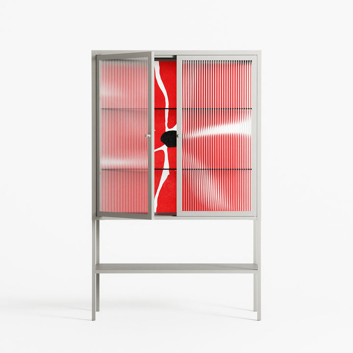 Vitrine pairs artworks by artists, designers, and creatives from around the world with a frame that elevates and displays them in everyday space. The cabinet is built from precision-cut metal with a powder-coated finish — resistant to wear and crafted for stability — making it ideal for both office and home spaces.