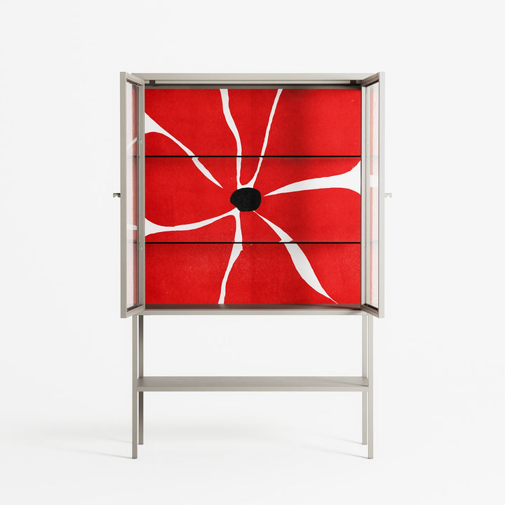 Vitrine pairs artworks by artists, designers, and creatives from around the world with a frame that elevates and displays them in everyday space. The cabinet is built from precision-cut metal with a powder-coated finish — resistant to wear and crafted for stability — making it ideal for both office and home spaces.