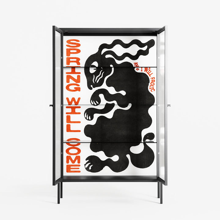 Vitrine pairs artworks by artists, designers, and creatives from around the world with a frame that elevates and displays them in everyday space. The cabinet is built from precision-cut metal with a powder-coated finish — resistant to wear and crafted for stability — making it ideal for both office and home spaces.