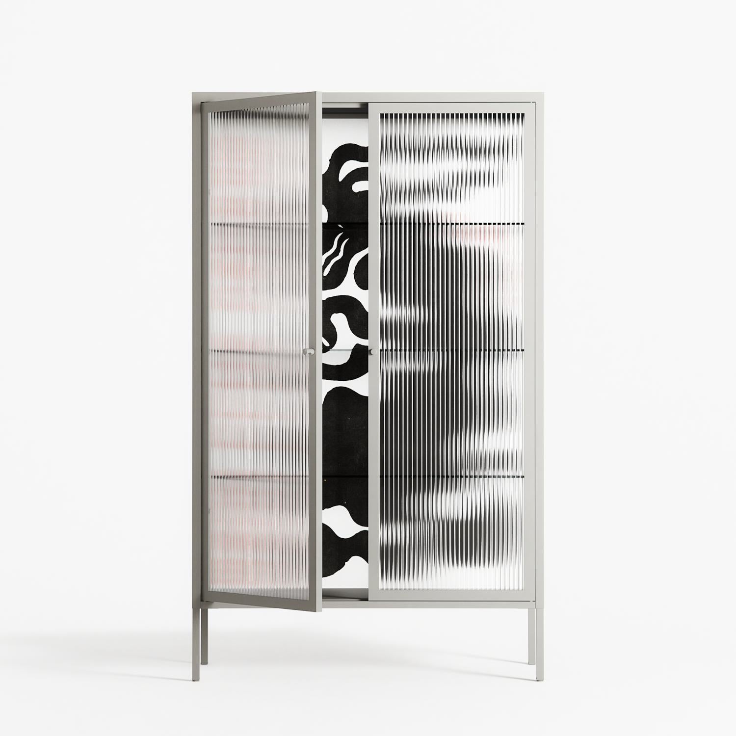 Vitrine pairs artworks by artists, designers, and creatives from around the world with a frame that elevates and displays them in everyday space. The cabinet is built from precision-cut metal with a powder-coated finish — resistant to wear and crafted for stability — making it ideal for both office and home spaces.