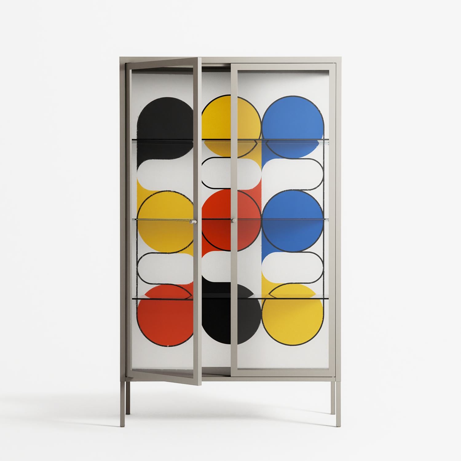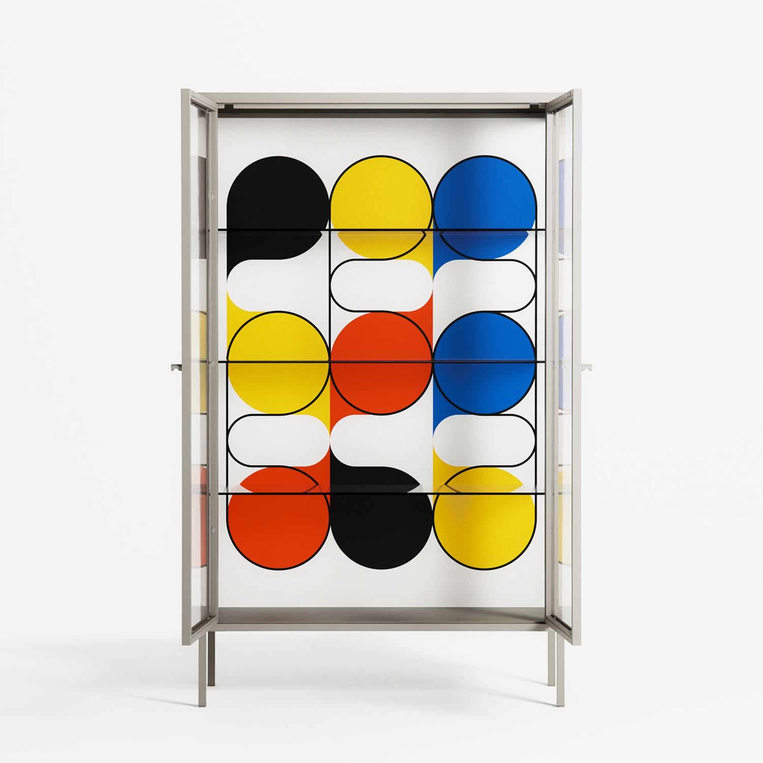 Vitrine pairs artworks by artists, designers, and creatives from around the world with a frame that elevates and displays them in everyday space. The cabinet is built from precision-cut metal with a powder-coated finish — resistant to wear and crafted for stability — making it ideal for both office and home spaces.