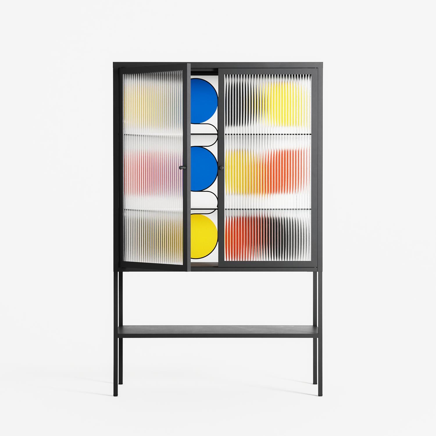 Vitrine pairs artworks by artists, designers, and creatives from around the world with a frame that elevates and displays them in everyday space. The cabinet is built from precision-cut metal with a powder-coated finish — resistant to wear and crafted for stability — making it ideal for both office and home spaces.