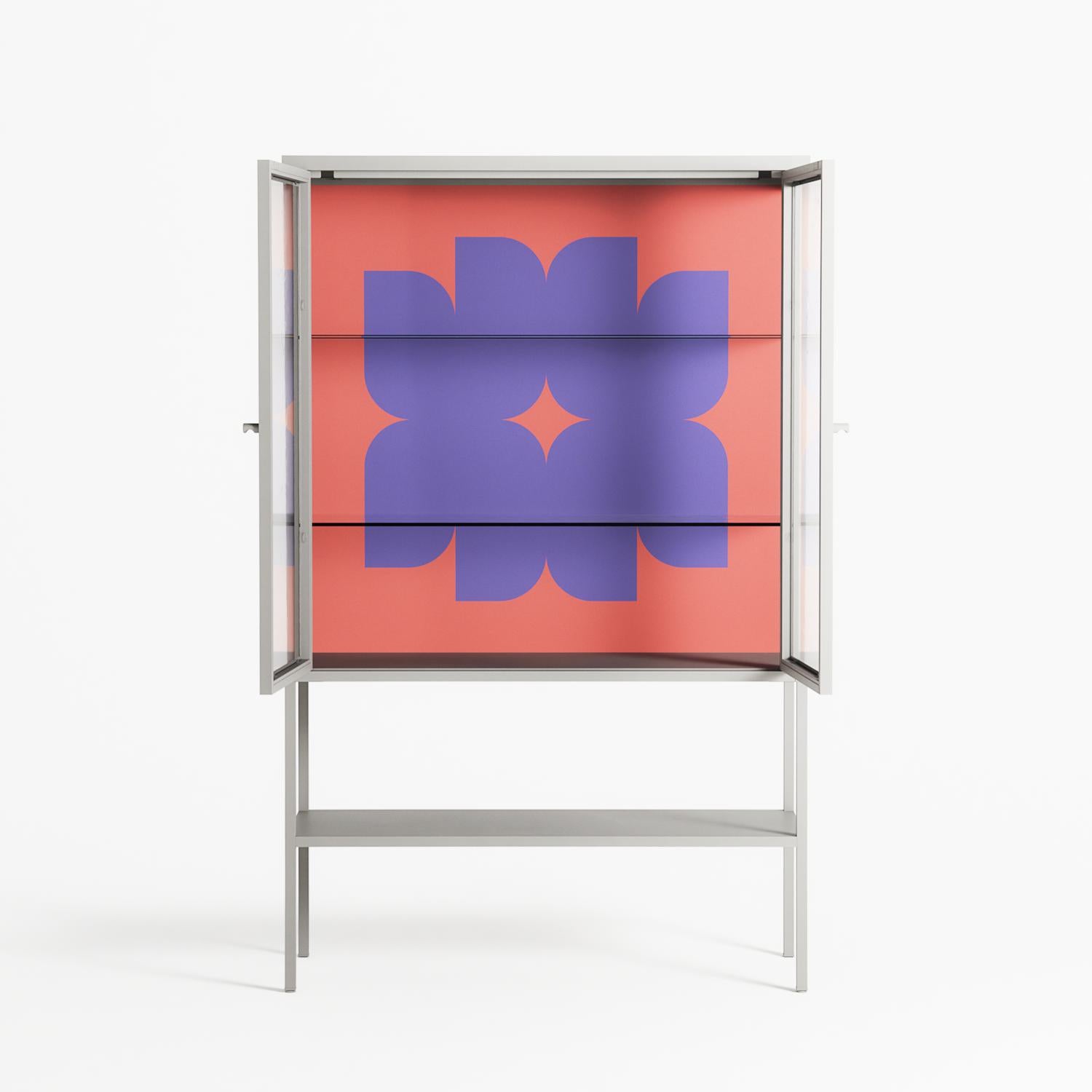 Vitrine pairs artworks by artists, designers, and creatives from around the world with a frame that elevates and displays them in everyday space. The cabinet is built from precision-cut metal with a powder-coated finish — resistant to wear and crafted for stability — making it ideal for both office and home spaces.