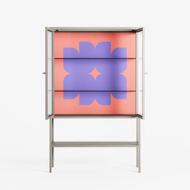 Vitrine pairs artworks by artists, designers, and creatives from around the world with a frame that elevates and displays them in everyday space. The cabinet is built from precision-cut metal with a powder-coated finish — resistant to wear and crafted for stability — making it ideal for both office and home spaces.