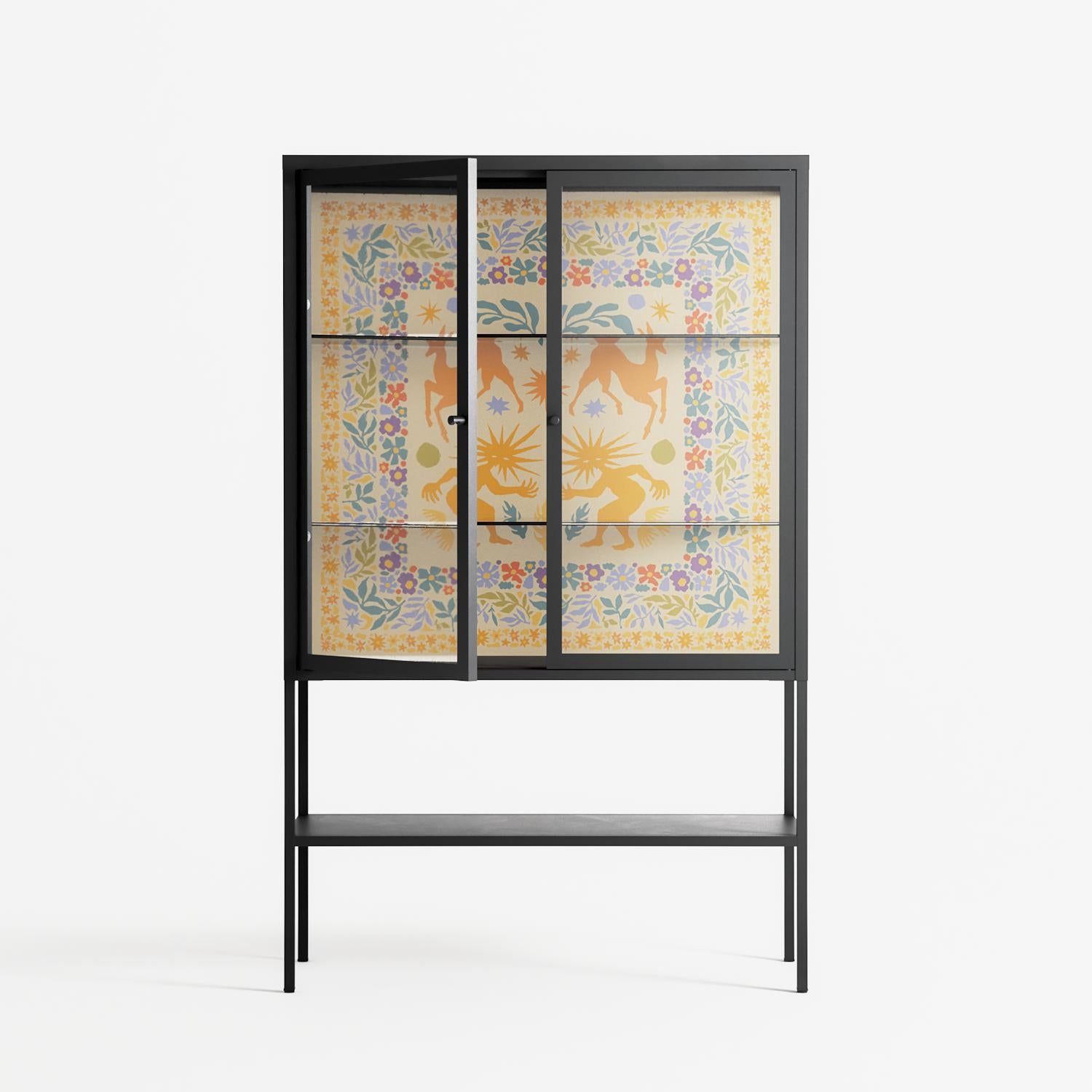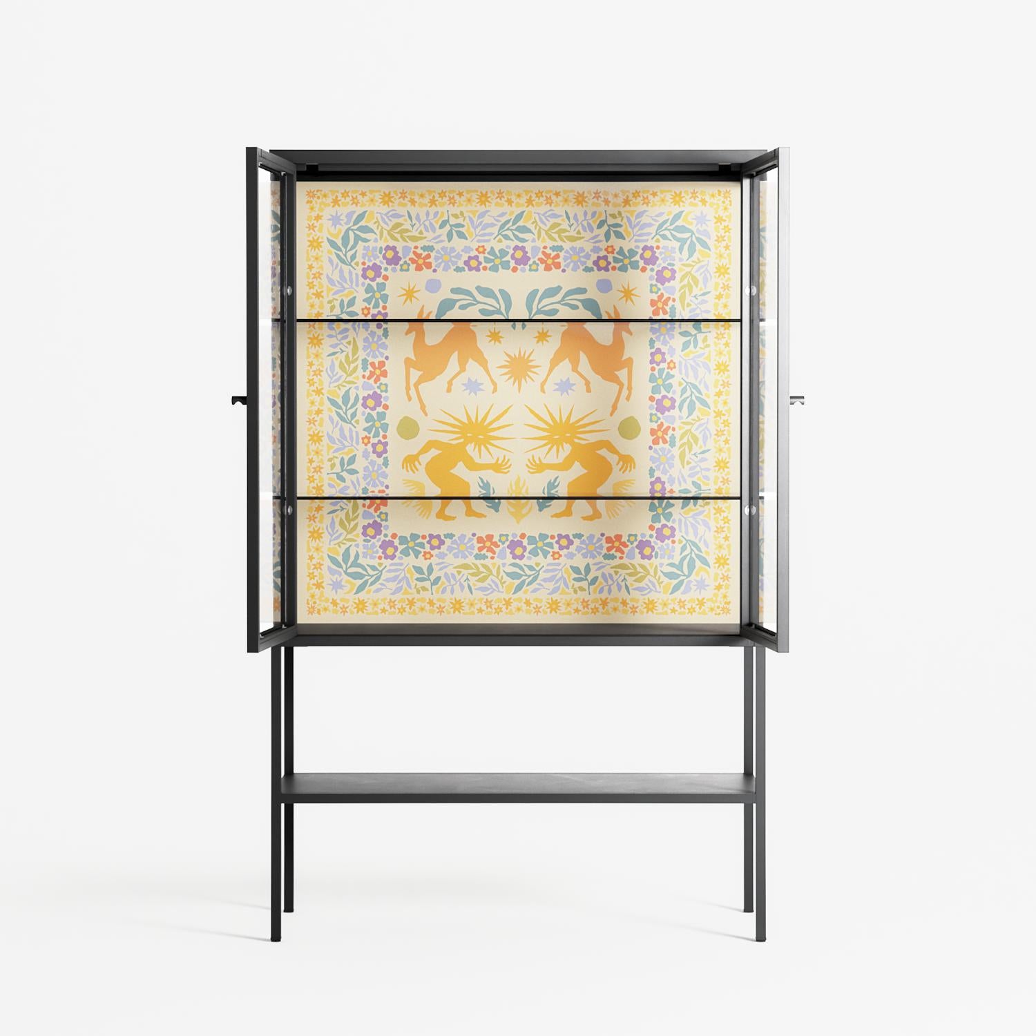 Vitrine pairs artworks by artists, designers, and creatives from around the world with a frame that elevates and displays them in everyday space. The cabinet is built from precision-cut metal with a powder-coated finish — resistant to wear and crafted for stability — making it ideal for both office and home spaces.
