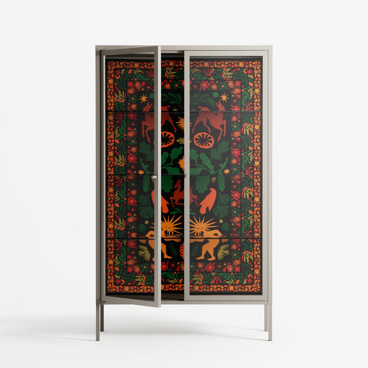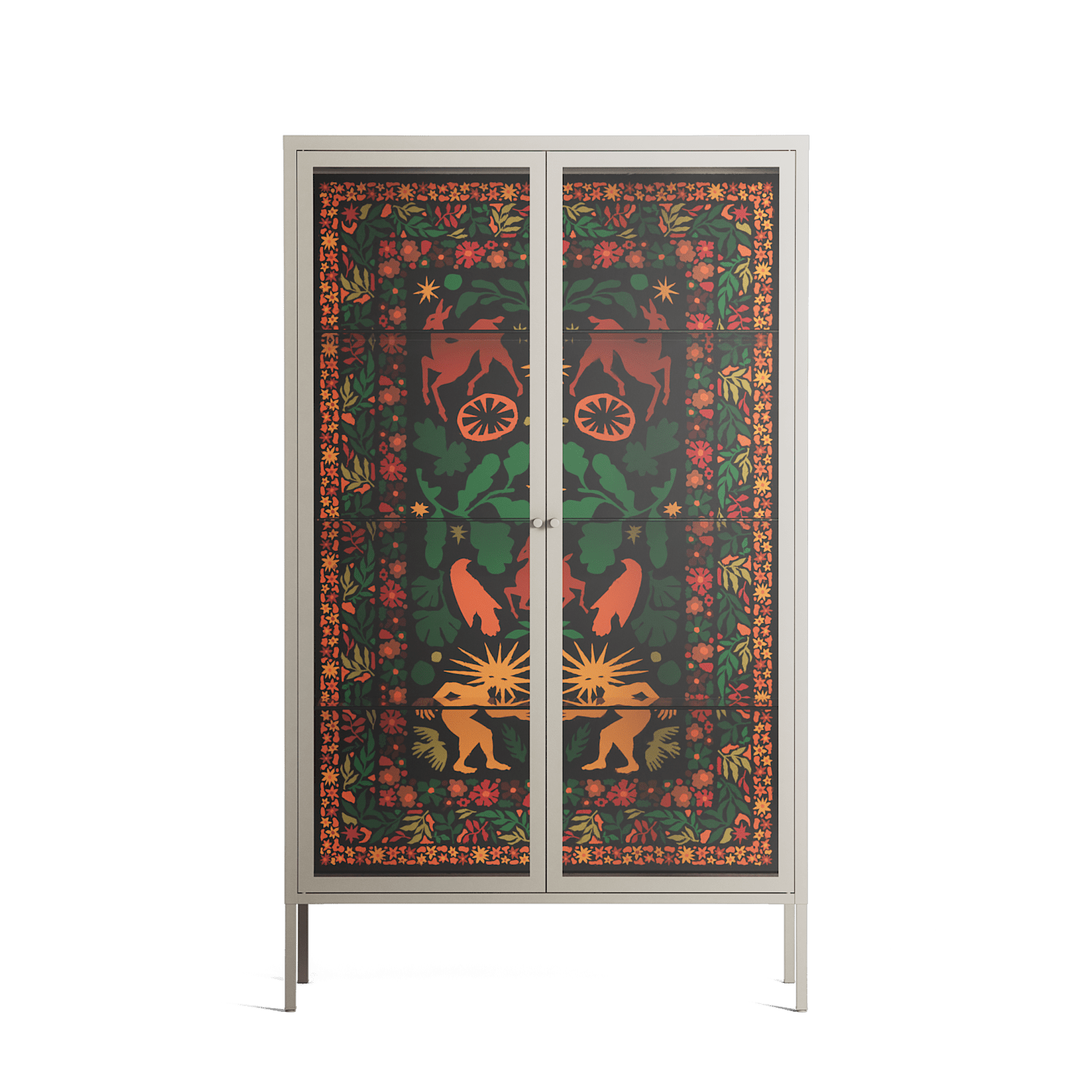 Vitrine pairs artworks by artists, designers, and creatives from around the world with a frame that elevates and displays them in everyday space. The cabinet is built from precision-cut metal with a powder-coated finish — resistant to wear and crafted for stability — making it ideal for both office and home spaces.