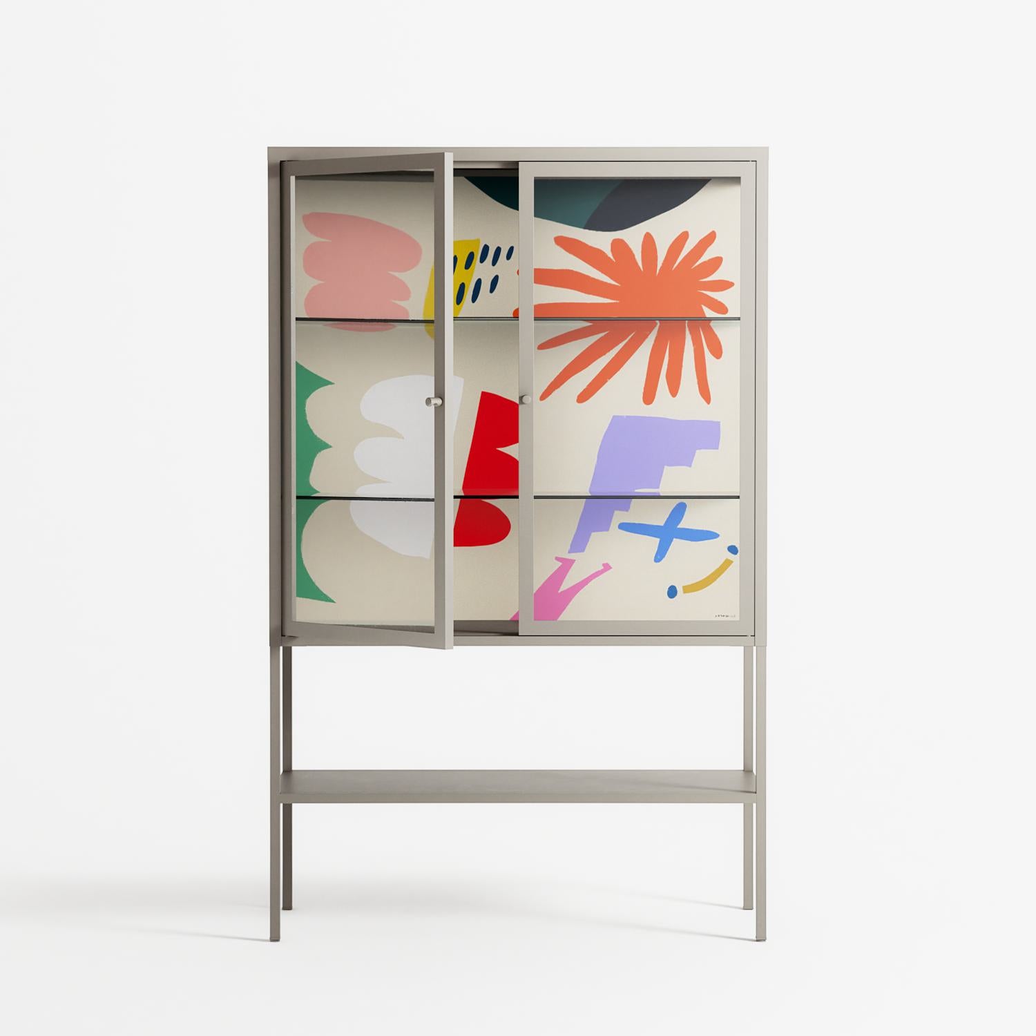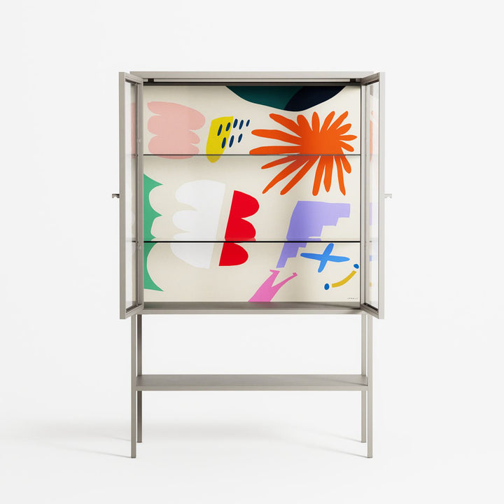 Vitrine pairs artworks by artists, designers, and creatives from around the world with a frame that elevates and displays them in everyday space. The cabinet is built from precision-cut metal with a powder-coated finish — resistant to wear and crafted for stability — making it ideal for both office and home spaces.