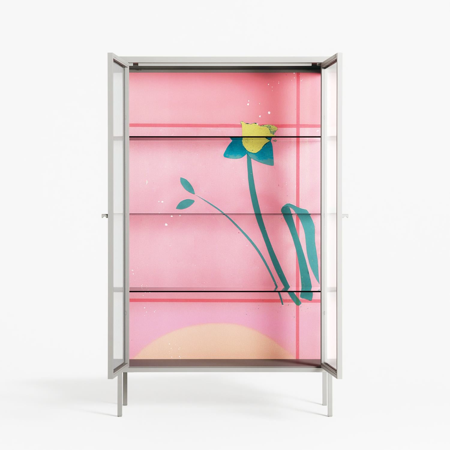 Vitrine pairs artworks by artists, designers, and creatives from around the world with a frame that elevates and displays them in everyday space. The cabinet is built from precision-cut metal with a powder-coated finish — resistant to wear and crafted for stability — making it ideal for both office and home spaces.