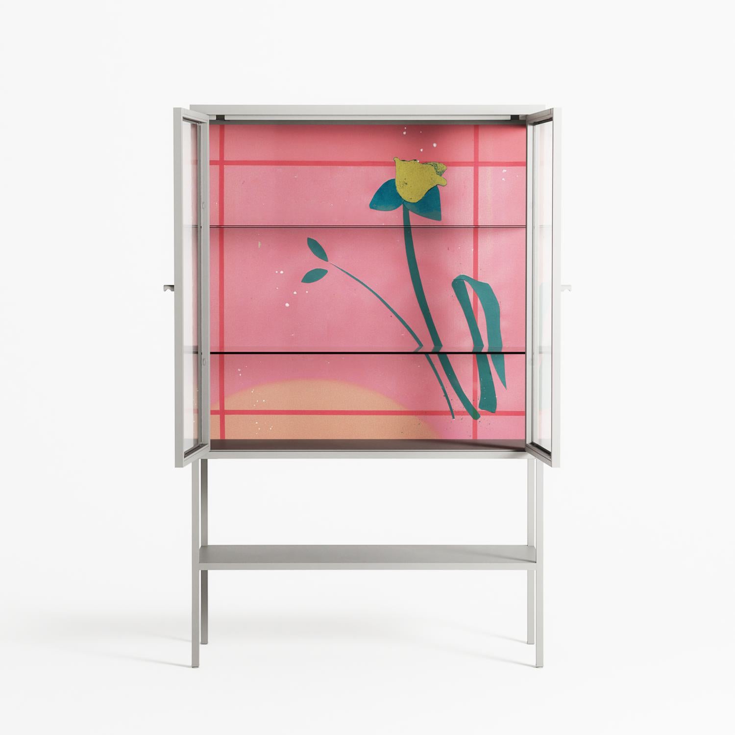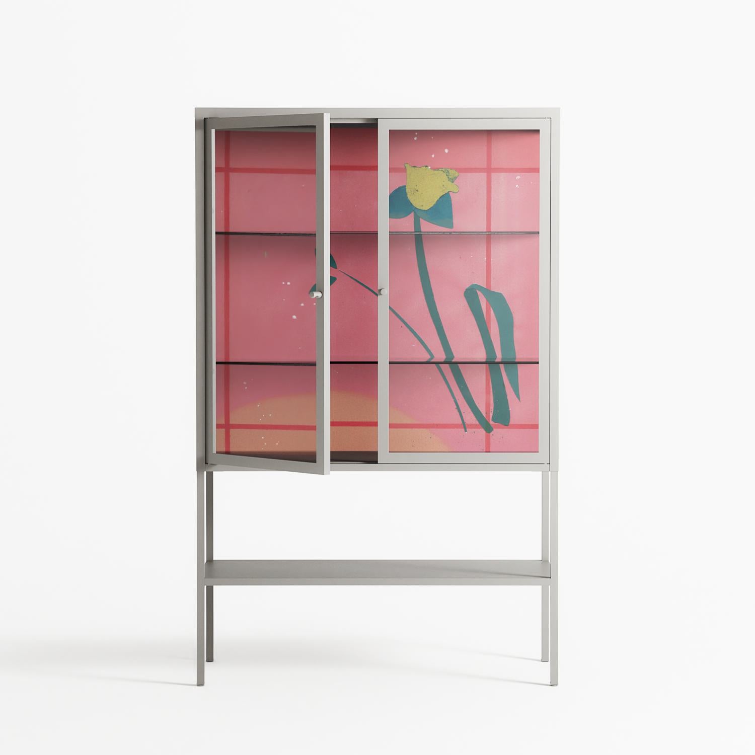 Vitrine pairs artworks by artists, designers, and creatives from around the world with a frame that elevates and displays them in everyday space. The cabinet is built from precision-cut metal with a powder-coated finish — resistant to wear and crafted for stability — making it ideal for both office and home spaces.
