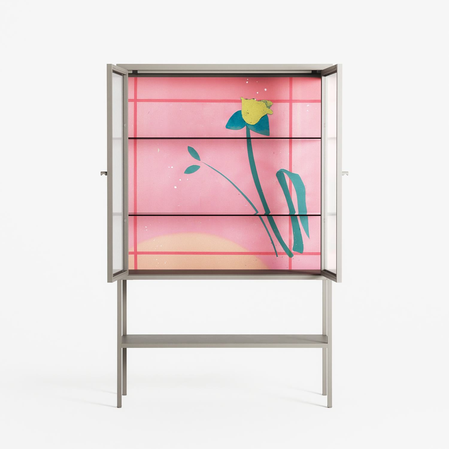 Vitrine pairs artworks by artists, designers, and creatives from around the world with a frame that elevates and displays them in everyday space. The cabinet is built from precision-cut metal with a powder-coated finish — resistant to wear and crafted for stability — making it ideal for both office and home spaces.